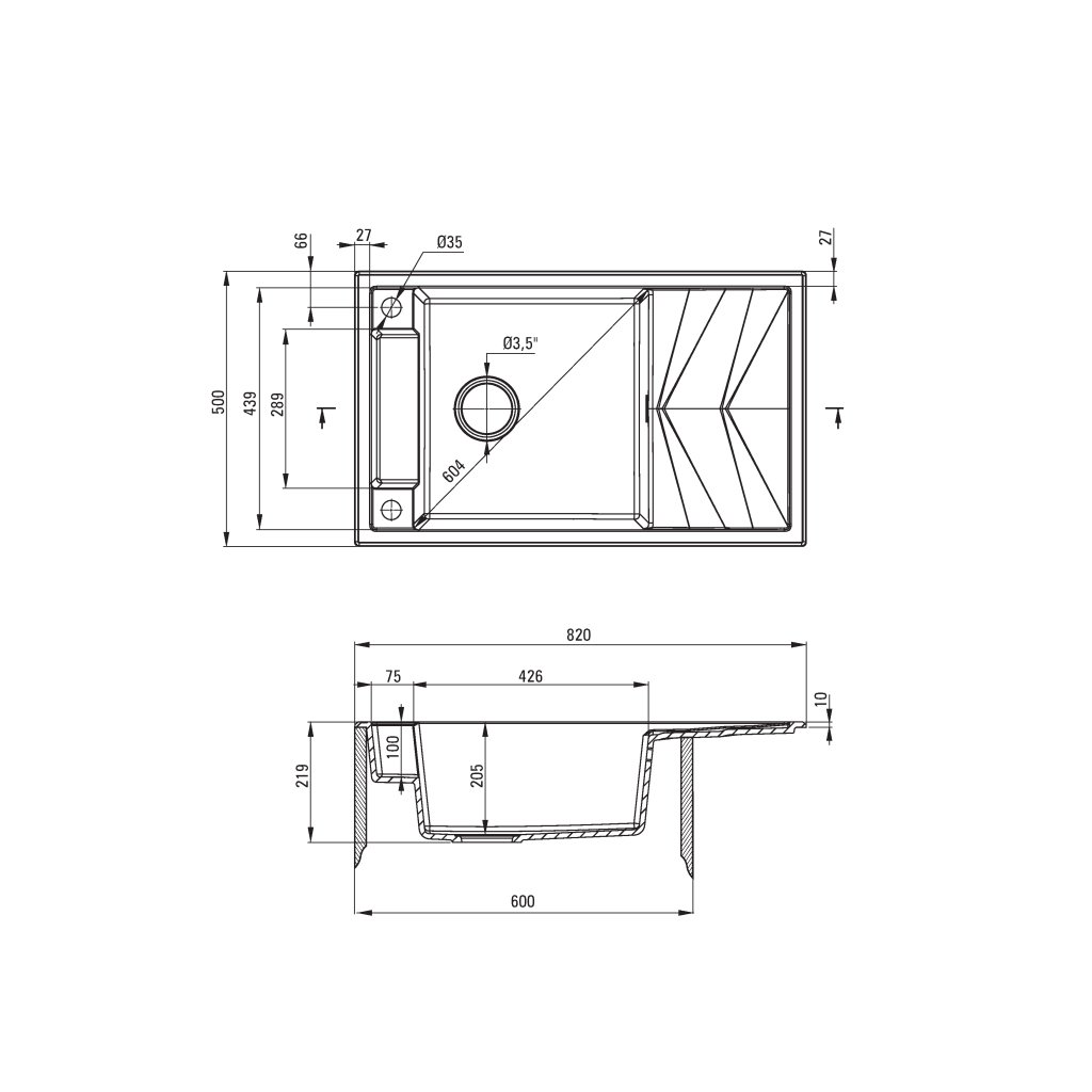 Deante Magnetic, chiuvetă blat granit 820x500x219 mm F/O, 3,5" + sifon care economisește spațiu, 1 cameră, negru, ZRM_N113
