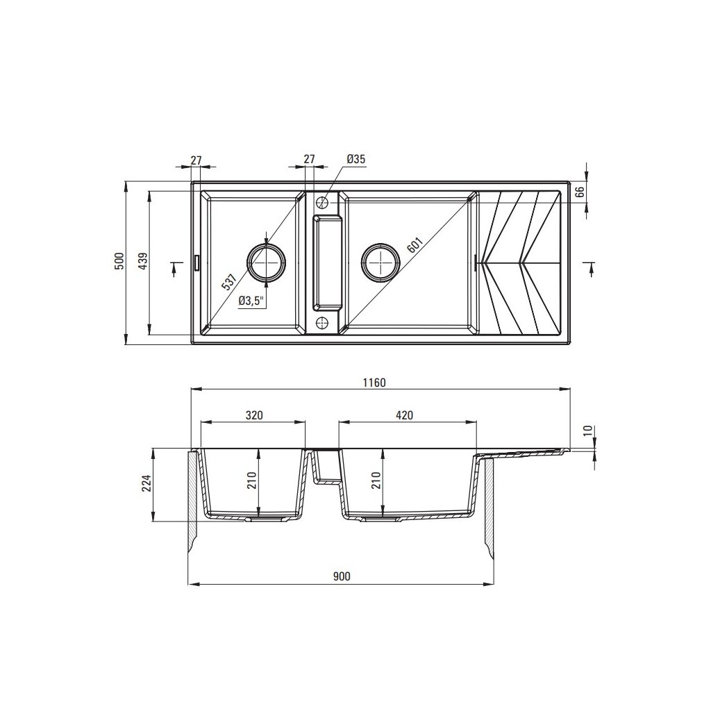 - Chiuvetă cu două fețe - posibilitatea de a instala vasul pe partea stângă sau dreaptă