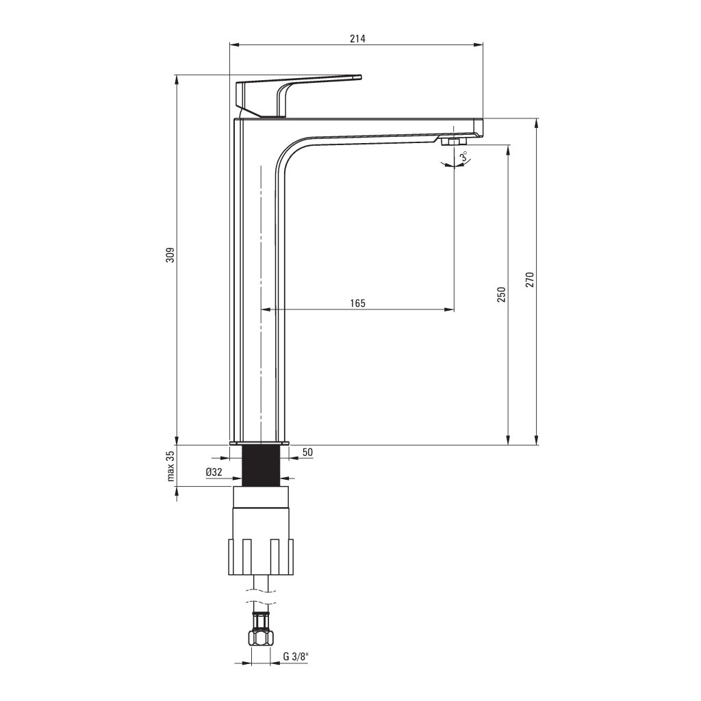 Deante Maruna, baterie lavoar înalt + dop metalic Click-Clack fără preaplin, crom, BGM_021K