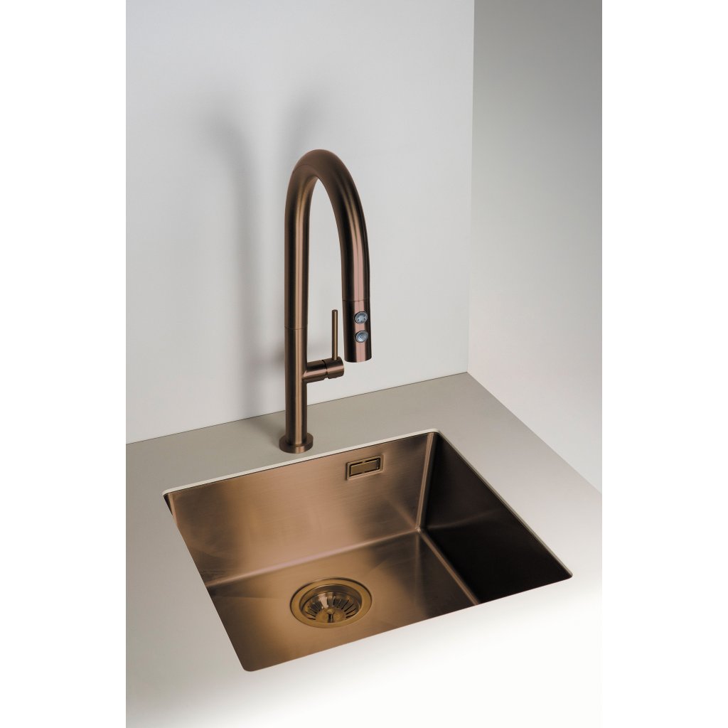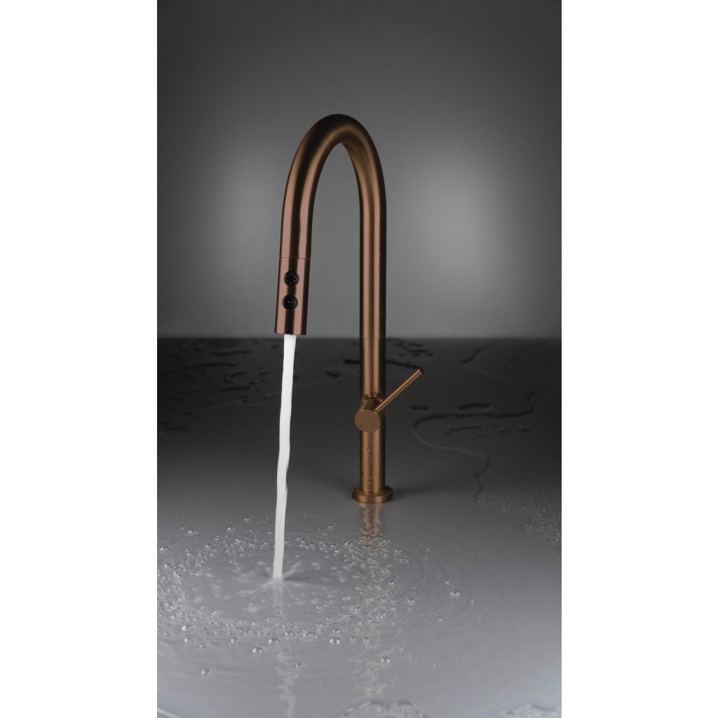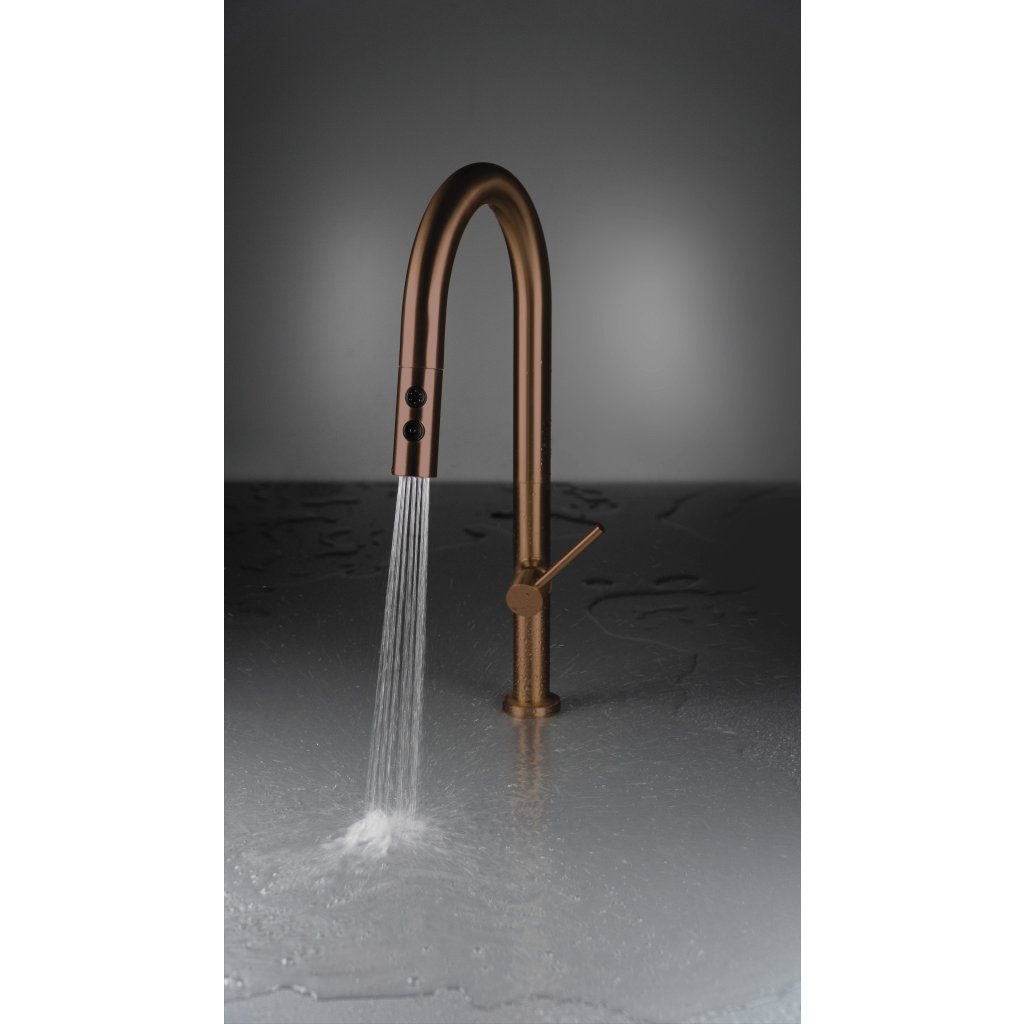 Bateria de bucătărie Olfato combină stilul și funcționalitatea și se potrivește perfect nevoilor unei bucătării moderne. Gura sa extractibilă facilitează menținerea chiuvetei curate. Telecomanda cu dublă funcție, cu jet aerat și de ploaie, oferă flexibilitate pentru sarcinile zilnice, cum ar fi spălarea vaselor sau clătirea legumelor și fructelor. Finisajul maro periat adaugă căldură și eleganță camerei.