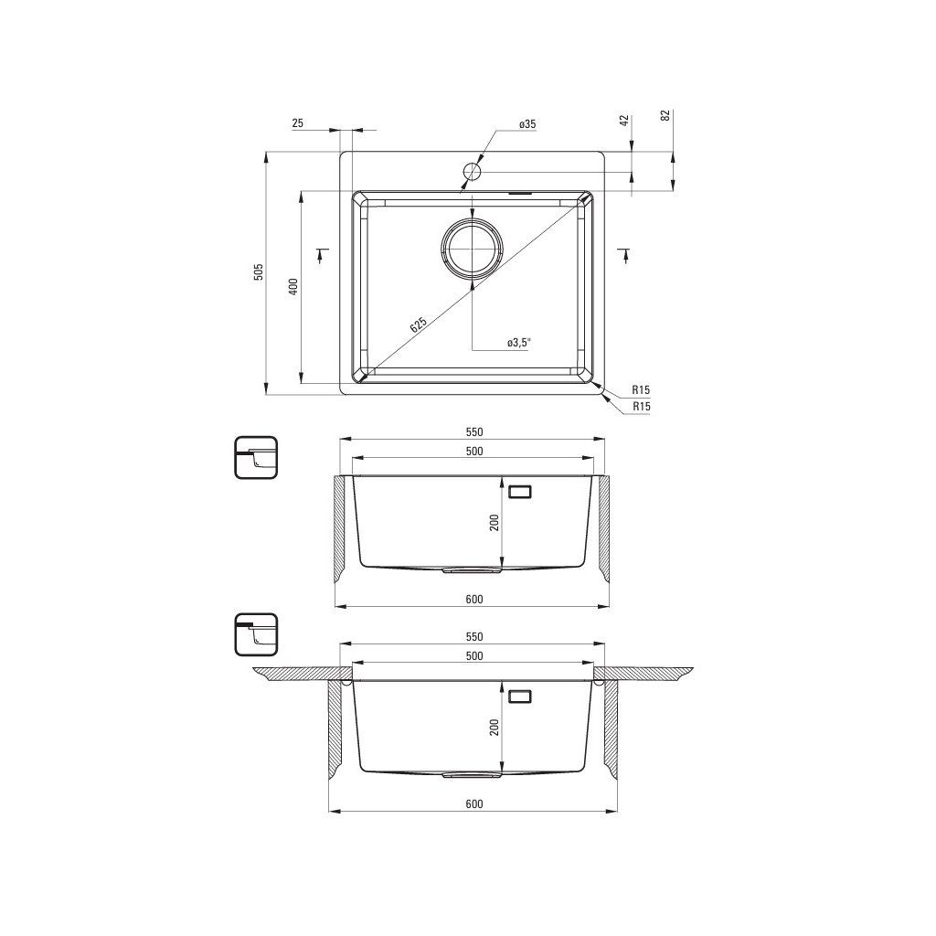 Chiuveta OLFATO PRECIOUS este realizata din otel inoxidabil rezistent cu o grosime de 0,8 mm. Se caracterizează printr-un finisaj original din titan și se potrivește perfect în bucătăriile moderne și în stil industrial. Otelul din care este fabricat OLFATO PRECIOUS nu se corodeaza, este rezistent la temperaturi extreme si la schimbarea culorii, nu absoarbe mirosurile neplacute si are proprietati antibacteriene. Acest model oferă trei opțiuni de montare: încastrat, la nivel cu blatul de lucru sau sub blat.