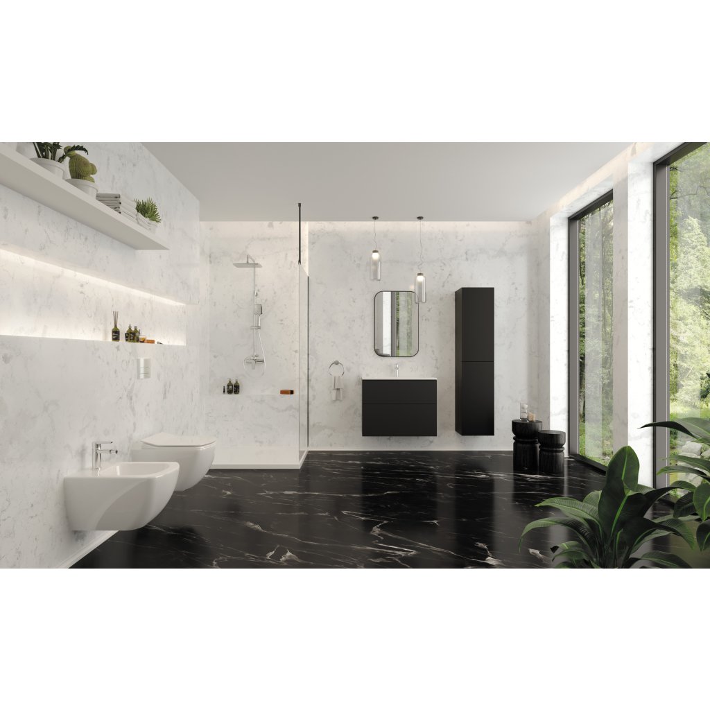 Coloana de baie Prizma, de culoare neagră mată, cu dimensiunile de 350x350x1600, este o alegere elegantă pentru cei care apreciază interioarele moderne și sofisticate. Designul său minimalist, fără mânere, accentuează eleganța și adaugă o notă de lux interiorului. Acest model, datorită structurii sale articulate, face baia mai spațioasă și mai ordonată. În plus, ușa dulapului poate fi instalată în funcție de nevoile utilizatorului - pe partea stângă sau dreaptă, ceea ce îi sporește funcționalitatea. Suprafața coloanei este acoperită cu lac UV de înaltă calitate, care garantează durabilitatea acesteia. Coloana este împărțită în două dulapuri, fiecare dintre acestea fiind echipat cu două rafturi reglabile. Livrarea mobilierului complet asamblat într-o cutie de carton este o garanție a fiabilității și ușurinței în utilizare.