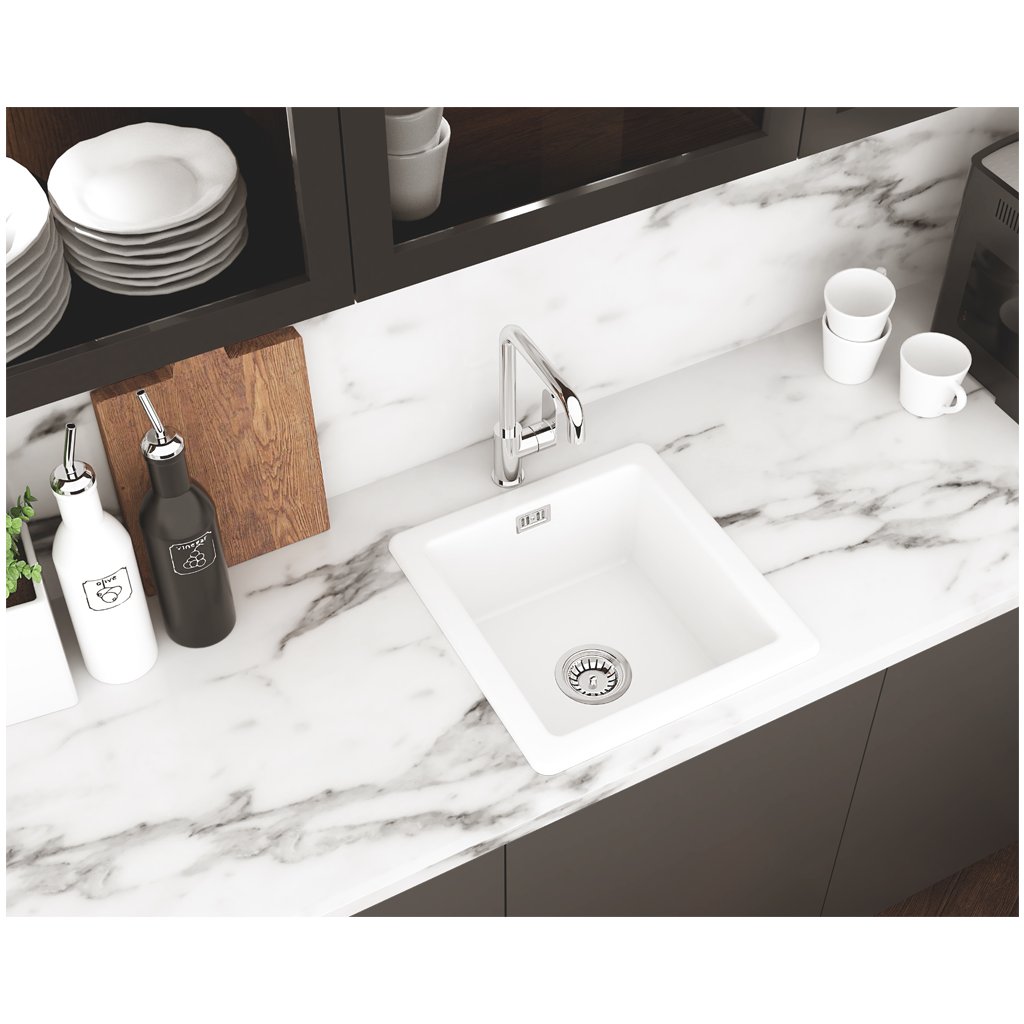 Chiuveta ceramică Deante Sabor este o soluție elegantă și de înaltă calitate pentru bucătăriile moderne, unde estetica și funcționalitatea sunt importante. Fabricată din ceramică extrem de rezistentă, chiuveta rezistă în mod fiabil la temperaturi ridicate, schimbări bruște de temperatură, zgârieturi și substanțe chimice utilizate în bucătărie. Suprafața albă mată arată atemporal, curat și se integrează armonios în diverse stiluri de echipamente de bucătărie. Chiuveta este cu o singură cameră și nu are scurgător, ceea ce îi conferă un aspect minimalist și permite utilizarea optimă a suprafeței de lucru, în special în bucătăriile mai mici. Datorită opțiunii de montare încastrată sau sub blat, arată foarte estetic, cu o tranziție curată între blat și chiuvetă. Chiuveta este pregătită pentru conectarea unei mașini de spălat vase sau a unei mașini de spălat rufe, ceea ce crește variabilitatea la instalarea electrocasnicelor de bucătărie.