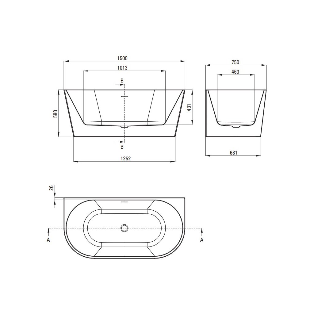 Deante Silia, cada de baie acrilică de sine stătătoare 150x75 cm, alb, DEA-KDS_015W