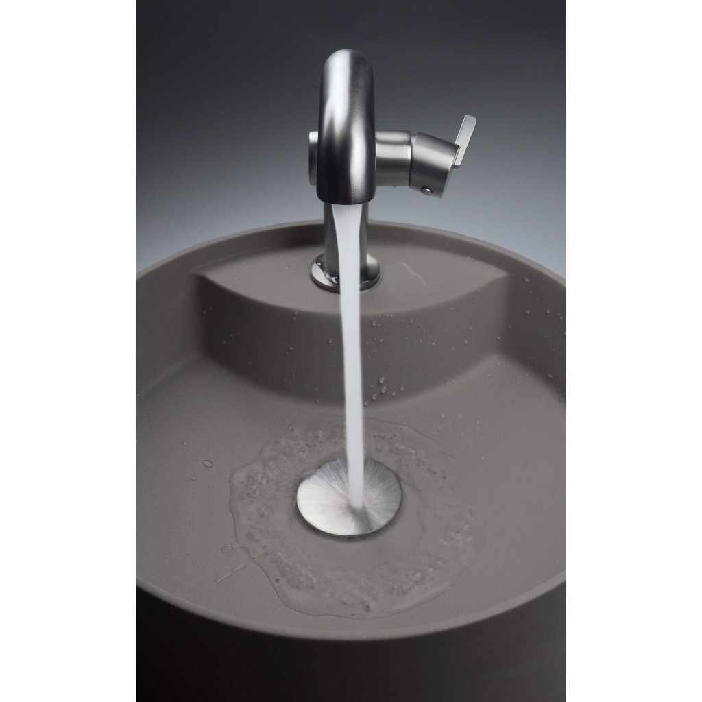 Chiuveta din granit Silia cu forma rotunda este prevazuta cu o insula integrata pentru instalarea bateriilor. Dimensiunile sale compacte se potrivesc perfect în spațiile de baie de diferite dimensiuni, atât spațioase, cât și mai intime. Plinul lipsă oferă chiuvetei o suprafață netedă, ceea ce face mai ușor să o păstrezi perfect curată. Suplimentând chiuveta cu o consolă de baie din aceeași serie, veți obține un design de baie armonios și complet.