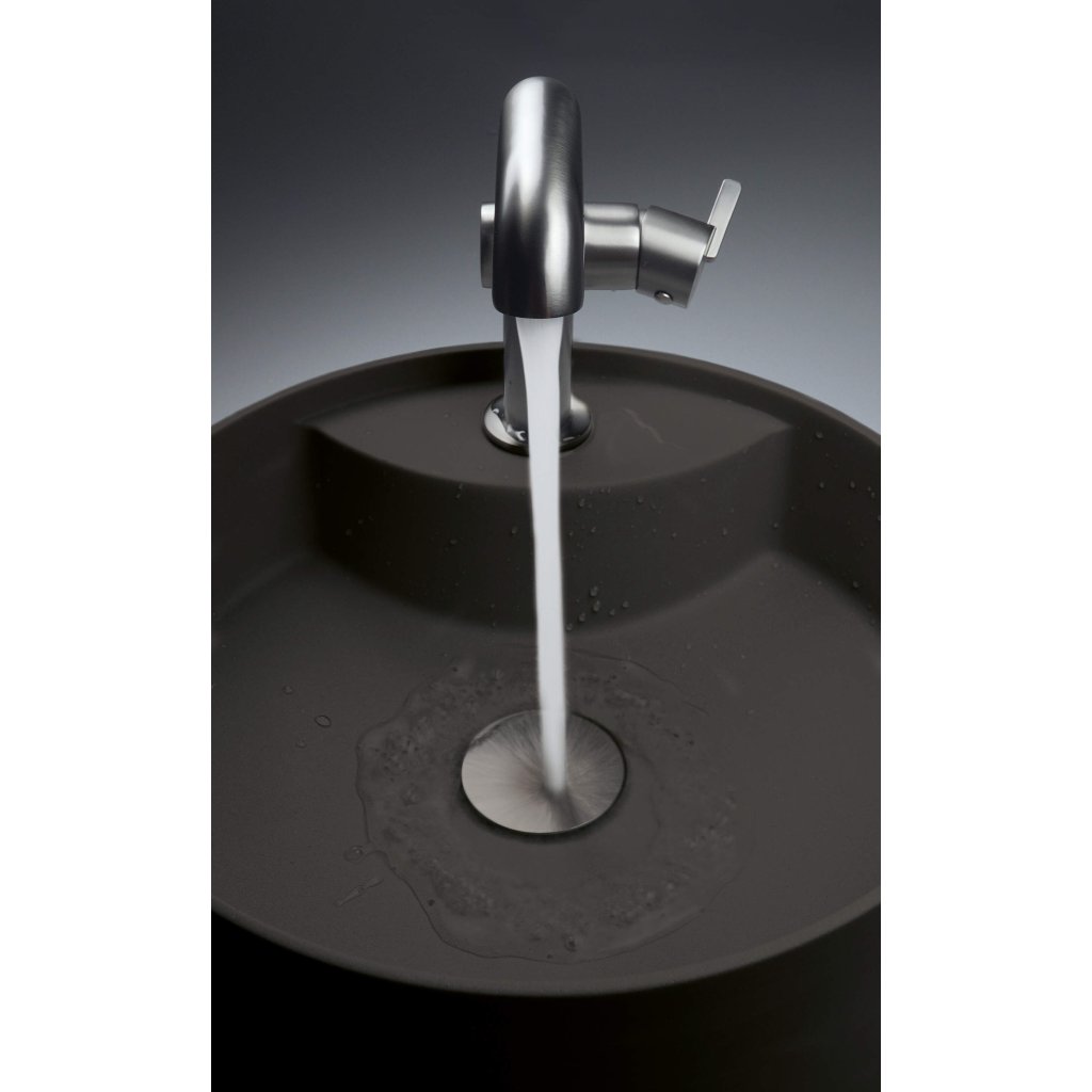 Chiuveta rotunda din granit Silia este echipata cu o insula integrata pentru instalarea bateriilor. Dimensiunile sale compacte se potrivesc perfect în spațiile de baie mari și mai compacte. Plinul lipsă oferă chiuvetei o suprafață netedă, ceea ce face mai ușor să o păstrezi perfect curată. Suplimentând chiuveta cu o consolă de baie din aceeași serie, veți obține un design de baie armonios și complet.