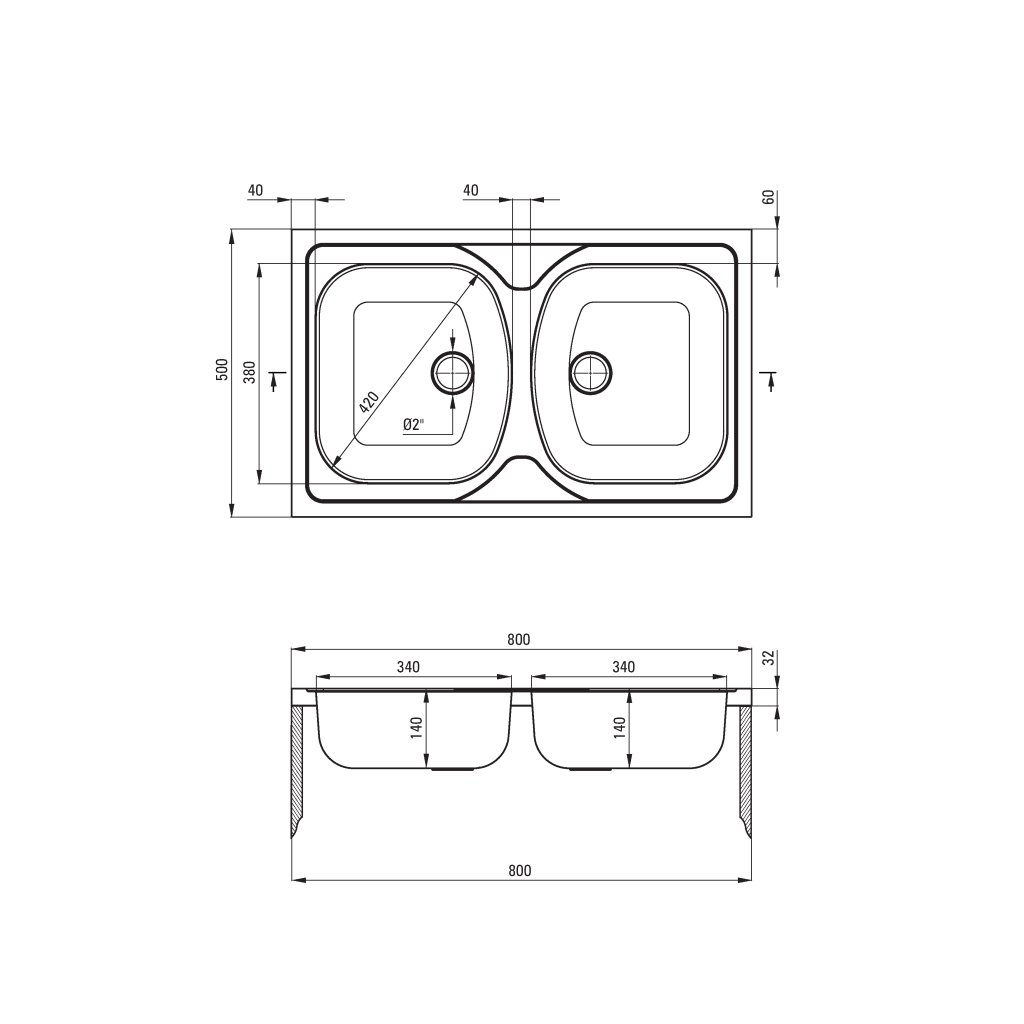 Deante Tango, chiuveta blat din inox cu 2 camere, B/O 800x500x140 2" + sifon, model decor, ZM5_3200
