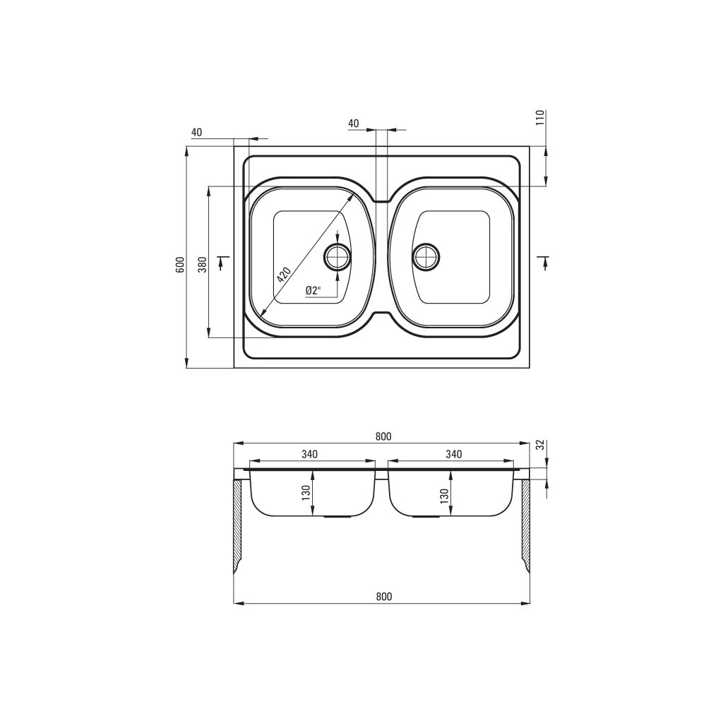 Deante Tango, chiuveta blat din inox cu 2 camere, B/O 800x600x130 2" + sifon, model decor, ZM6_3200
