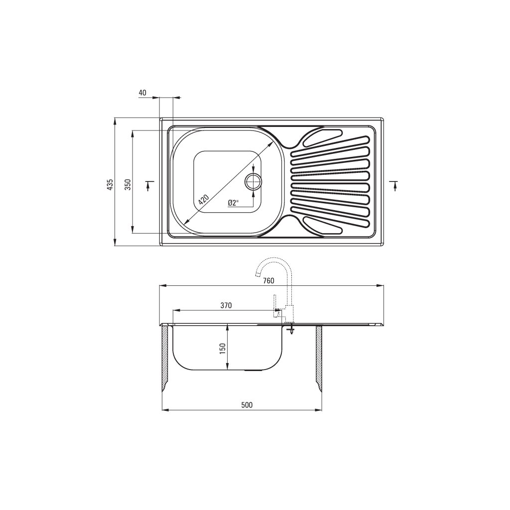 Chiuveta din inox XYLO 760 x 435 x 150 mm