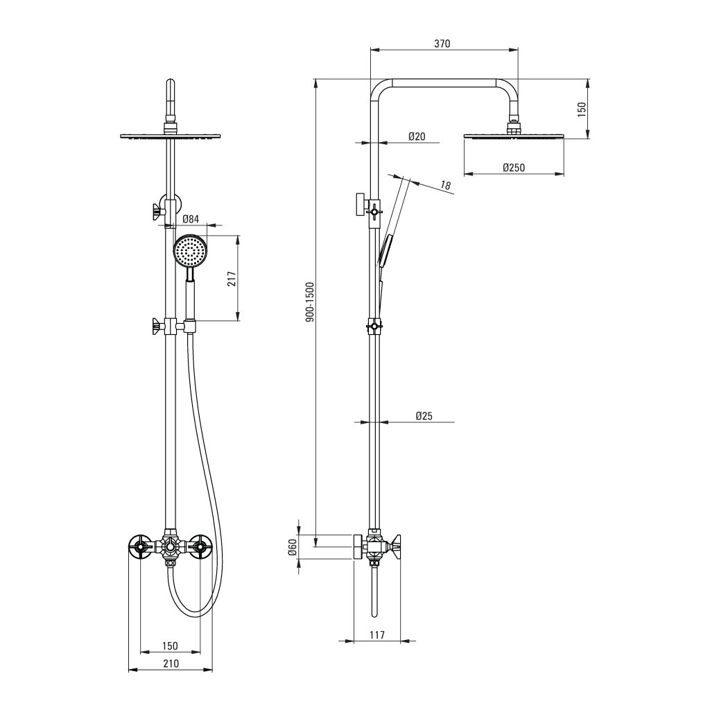 Capul de duș cu efect de ploaie cromat cu baterie de duș din seria premiată Temisto este un produs conceput nu numai pentru un design perfect, ci și pentru confort și comoditate - chiar și pentru utilizatorii mici de baie. Setul prezentat este format dintr-un robinet cu două mânere cu robinete stilizate care amintesc de elicele avionului, o tijă reglabilă pe înălțime (de la 940 la 1500 mm), un cap de duș din alamă și un cap de duș cu un furtun de oțel lung de 1,5 m. Funcția anti-răsucire împiedică răsucirea furtunului în timpul utilizării, iar inelul O menține ferm capul portabil în suport.