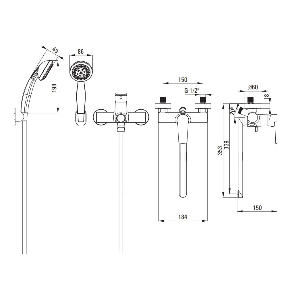 - Tip: baterie cadă cu braț prelungit + set de duș manual cu 1 punct