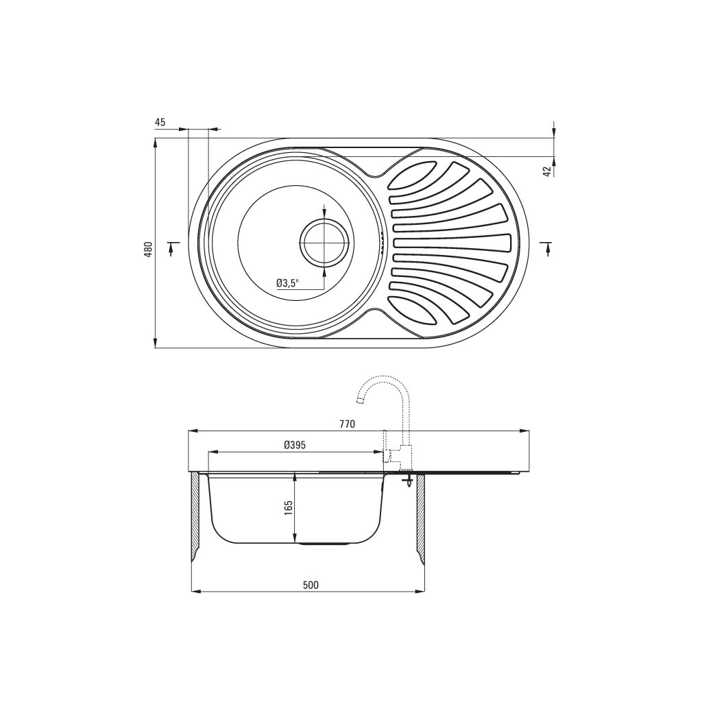 - Diametru de scurgere: 3,5 inchi