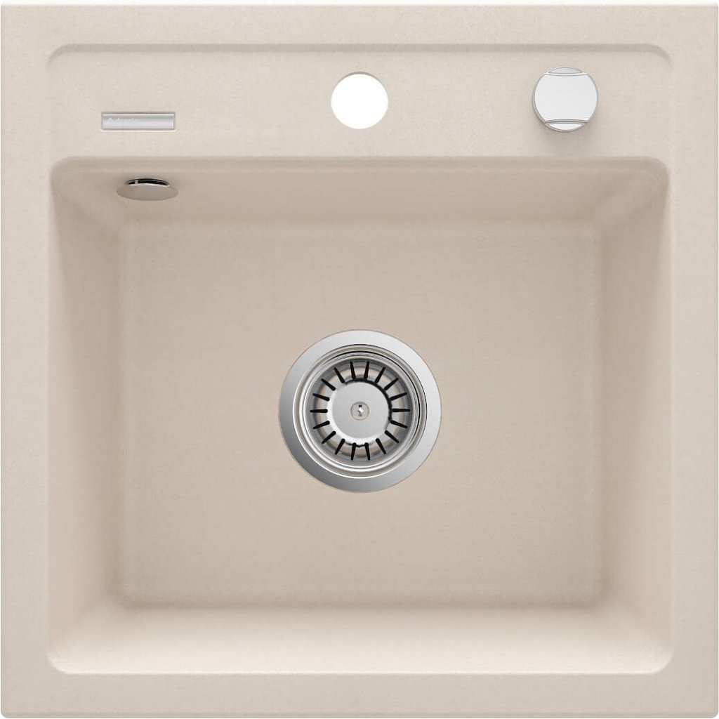 Deante Zorba, chiuveta granit 440x440x184 mm B/O, 3,5" + sifon de economisire a spațiului, 1 cameră, bej, ZQZ_5103