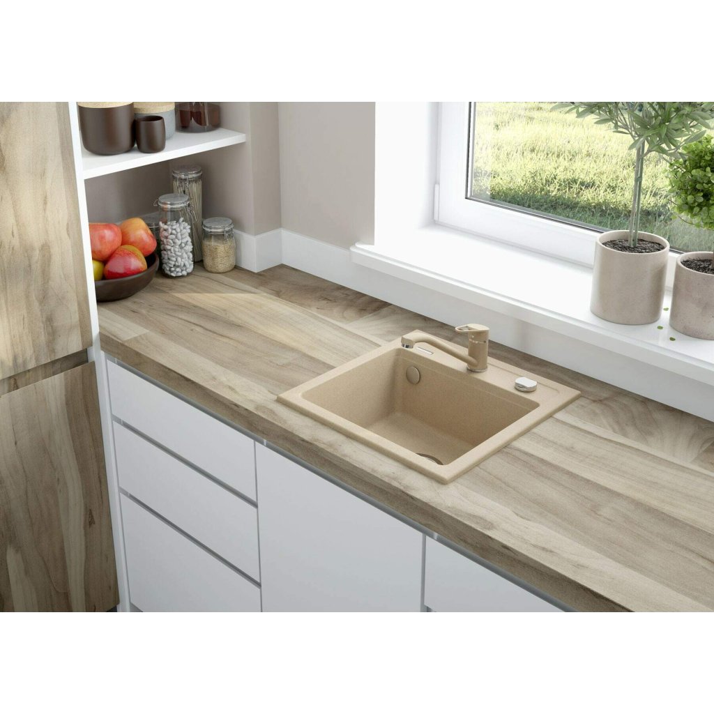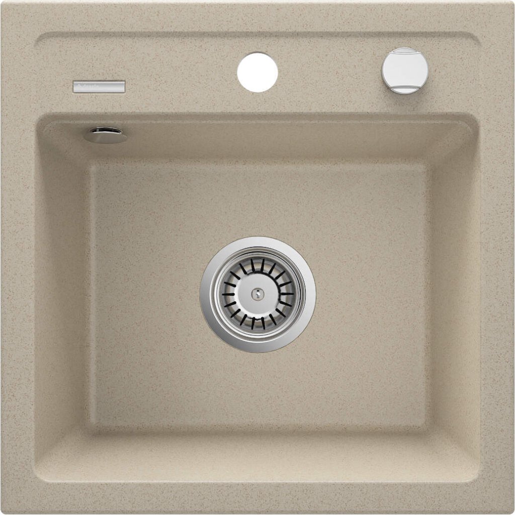 Deante Zorba, chiuveta granit 440x440x184 mm B/O, 3.5" + sifon de economisire a spațiului, 1 cameră, nisip, ZQZ_7103