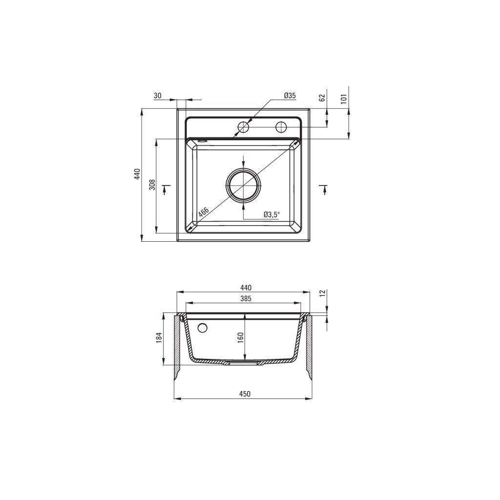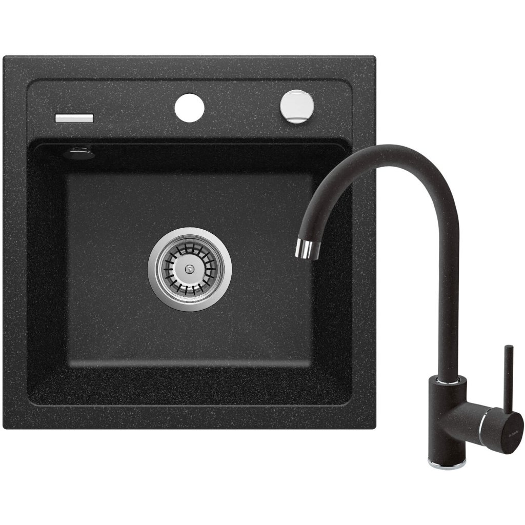 Deante Zorba, chiuveta granit 440x440x184 mm B/O, 3.5" + sifon de economisire a spațiului, 1 cameră + robinet Nemezja, grafit, ZQZA2103
