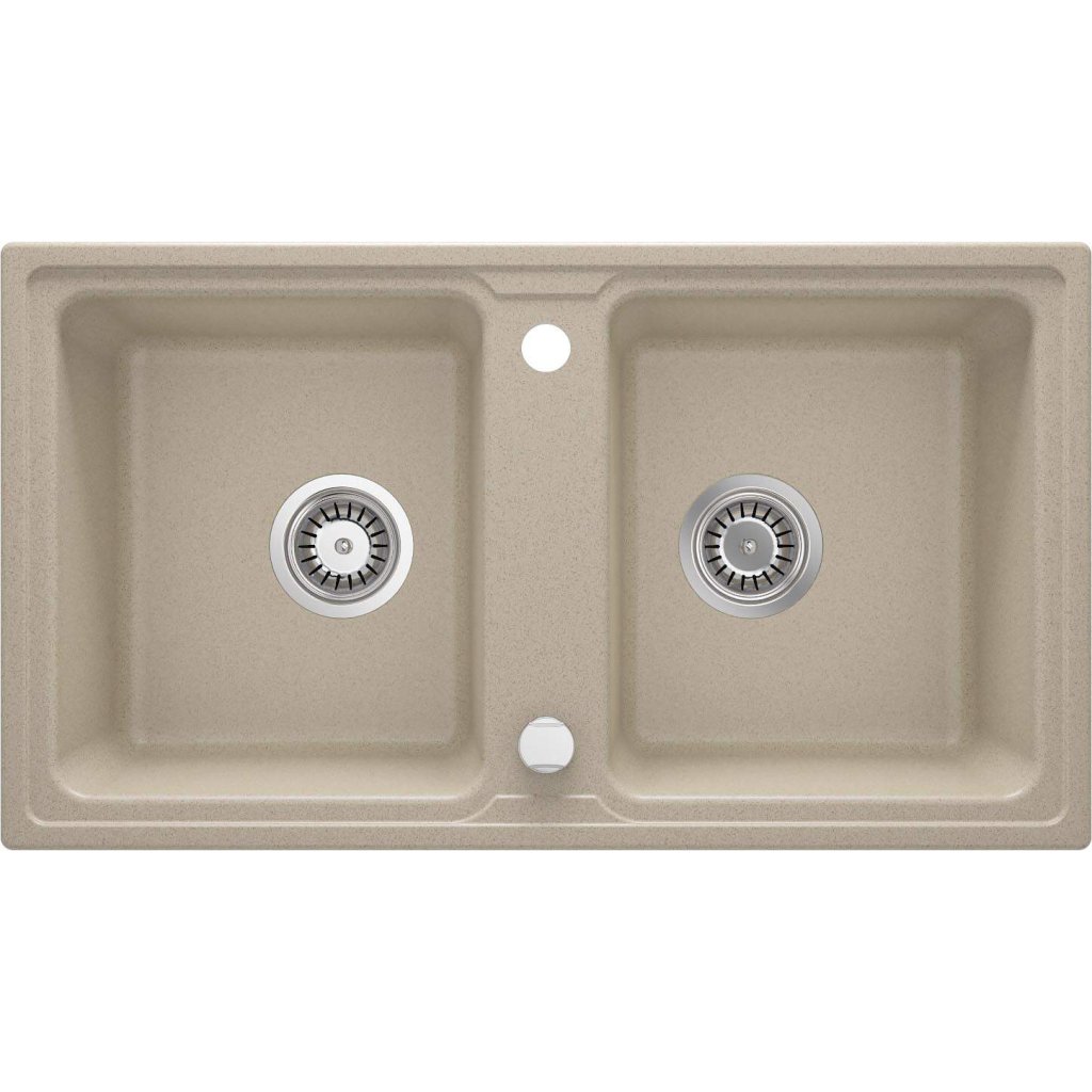 Deante Zorba, chiuveta granit 780x435x180 mm B/O, 3.5" + sifon de economisire a spațiului, 2 camere, nisip, ZQZ_7203
