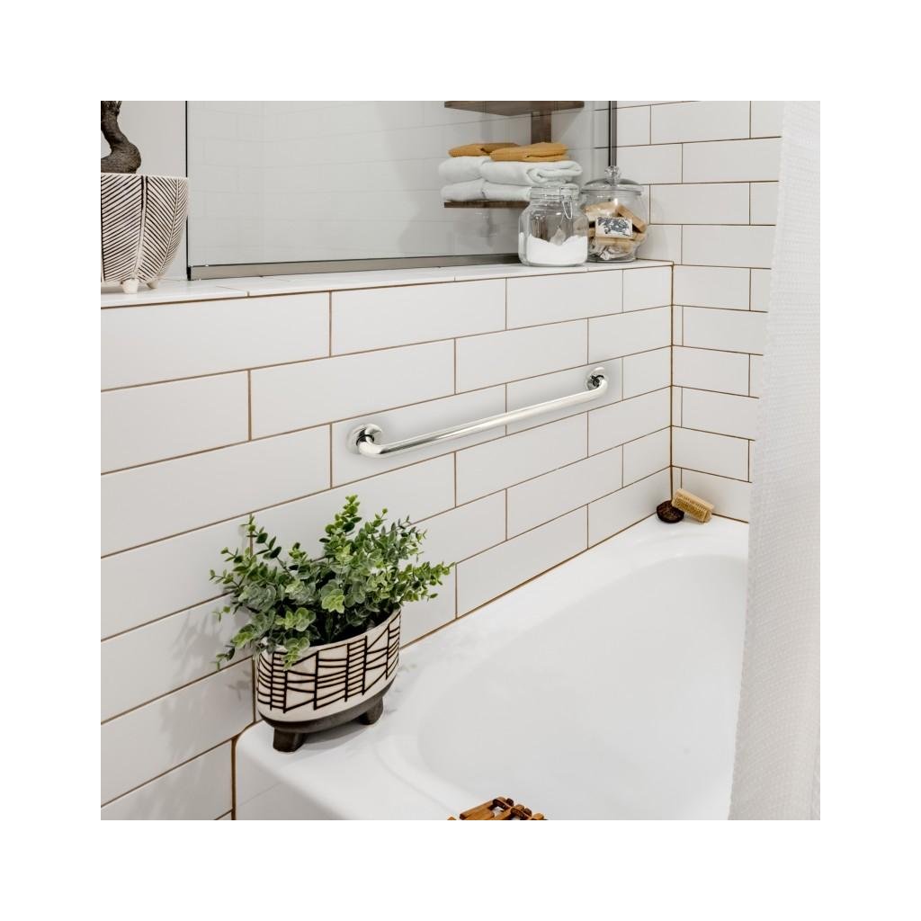 Mâner universal pentru baie din metal. Mânerele au fost create pentru a asigura nivelul maxim de siguranță în timpul operațiunilor de igienă. O bară de sprijin în baie este un element cheie al băii pentru bătrâni, copii și persoane cu dizabilități. Capacitate mâner de până la 190 kg.