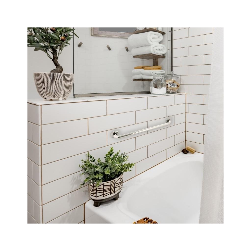 Mâner universal pentru baie din metal. Mânerele au fost create pentru a asigura nivelul maxim de siguranță în timpul operațiunilor de igienă. Bara de sprijin pentru baie este un element cheie al băii pentru bătrâni, copii și persoane cu dizabilități. Capacitate mâner de până la 190 kg.