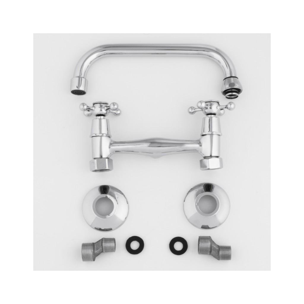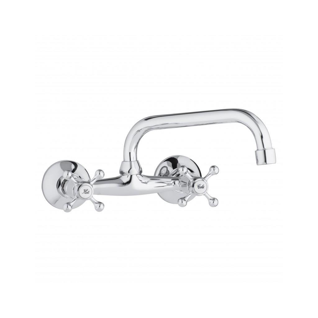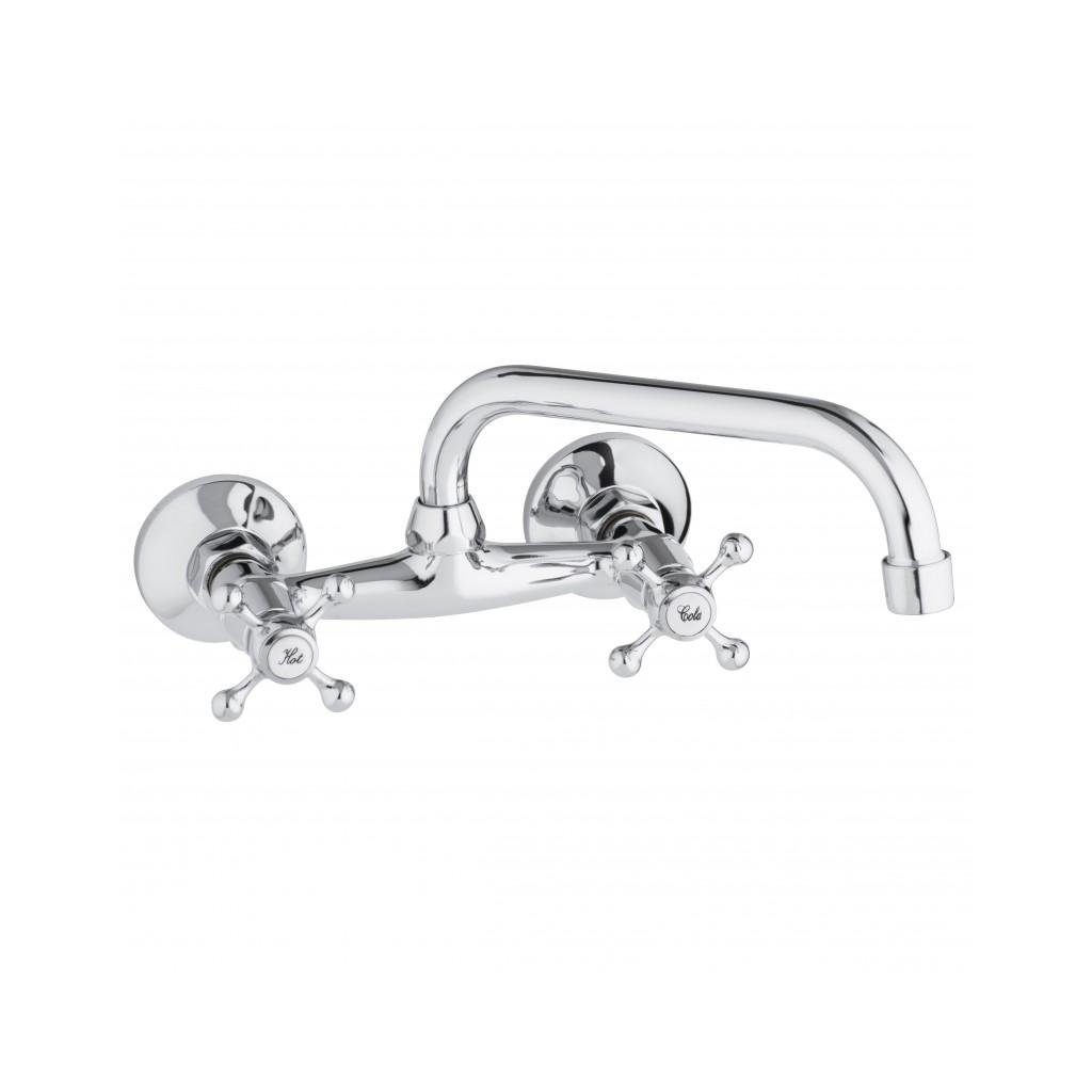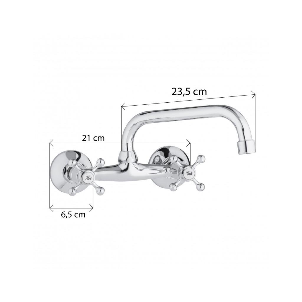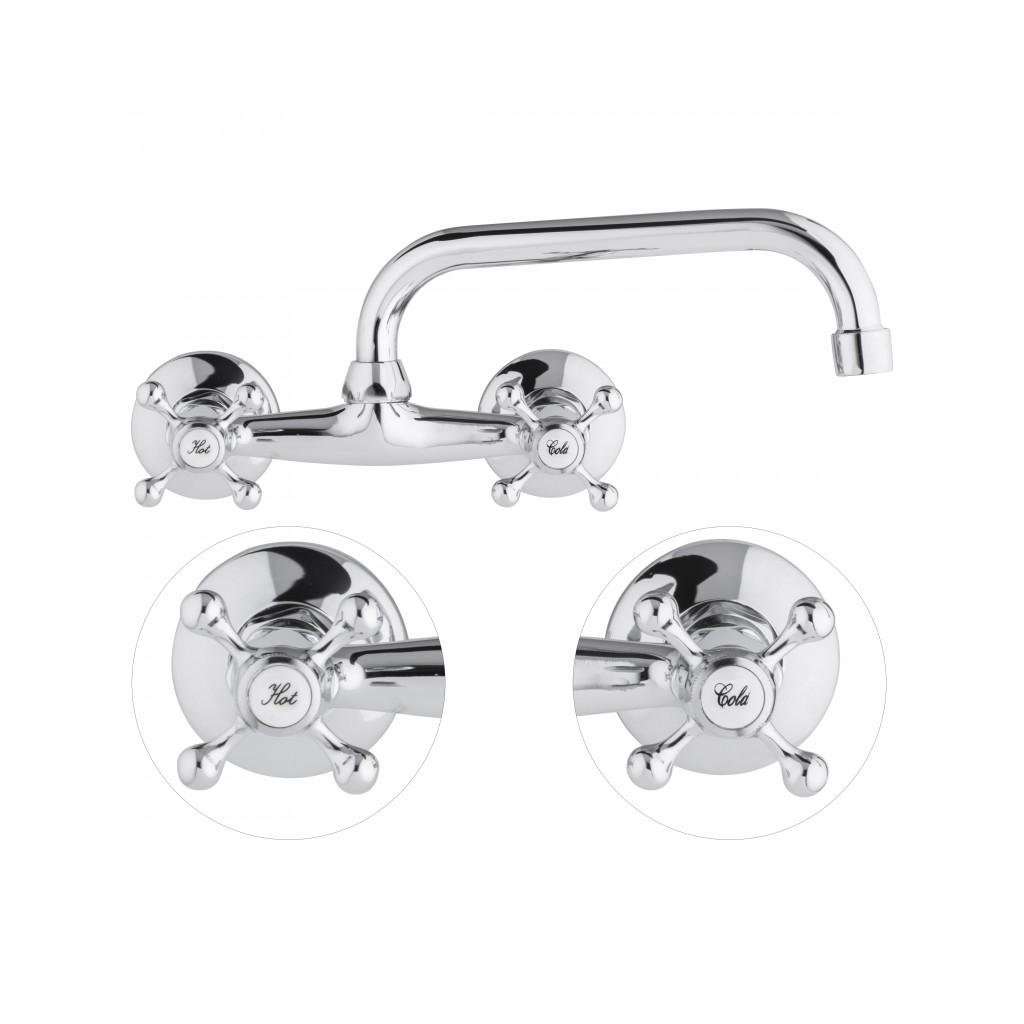 Baterie mecanica chiuveta / chiuveta, montata pe perete, baterie cu doua manere in stil retro. Bateria are o duză profilată, rotativă. Aeratorul reduce consumul de apă cu până la 40%.