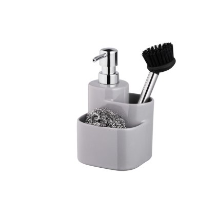 Erga Basic, organizator de bucatarie ceramica cu dozator de detergent 3 buc, gri, ERG-07675