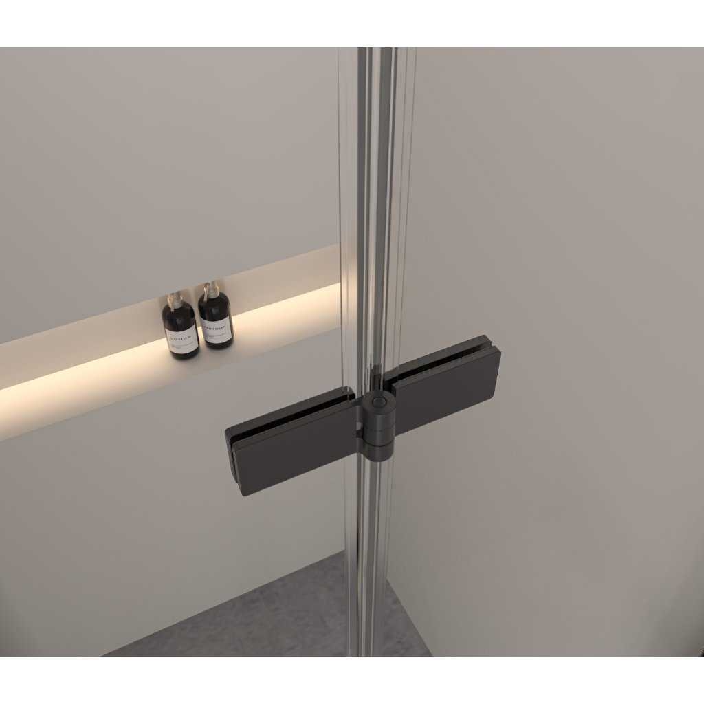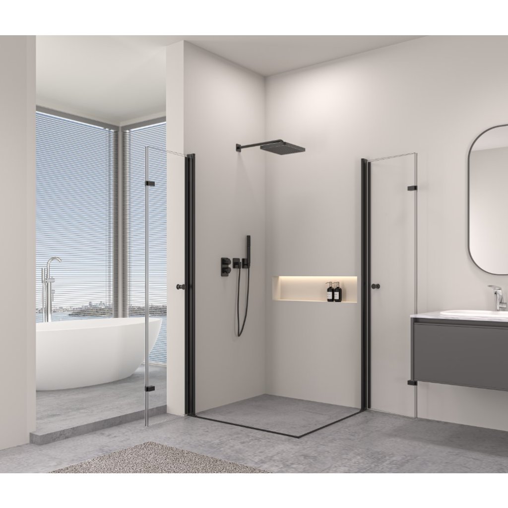 Erga Berlin Double, cabină de duș cu uși pliante duble 75 (uşă) x 110 (uşă) x 195 cm, sticlă transparentă de 6 mm, profil negru, ERG-V02-BERLIN-D075D110-CL-BK
