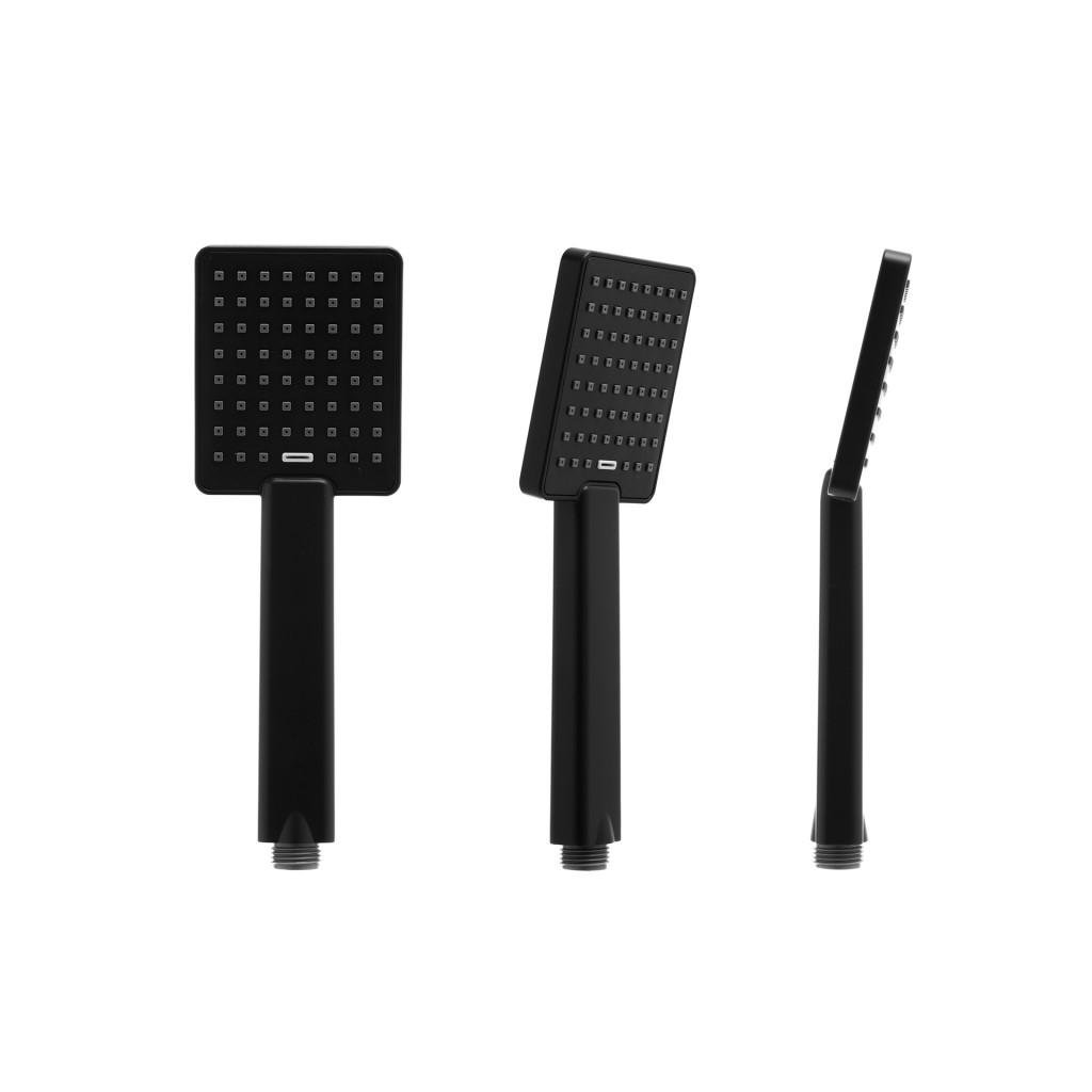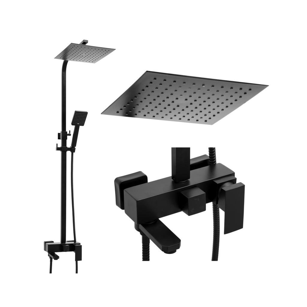 Set de duș cu robinet mecanic, element de control și comutator de debit de apă între dușul cu efect de ploaie, capul de duș manual și dușul de cadă. Calitatea înaltă a suprafeței negre este garantată de tehnologia modernă de vopsire cu pulbere. Setul include un duș cu efect de ploaie larg, elegant, cu dimensiunile de 25 x 25 cm și un cap de duș cu sistem modern ANTI-CALC care previne depunerile de calcar.