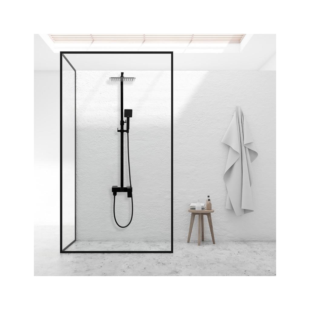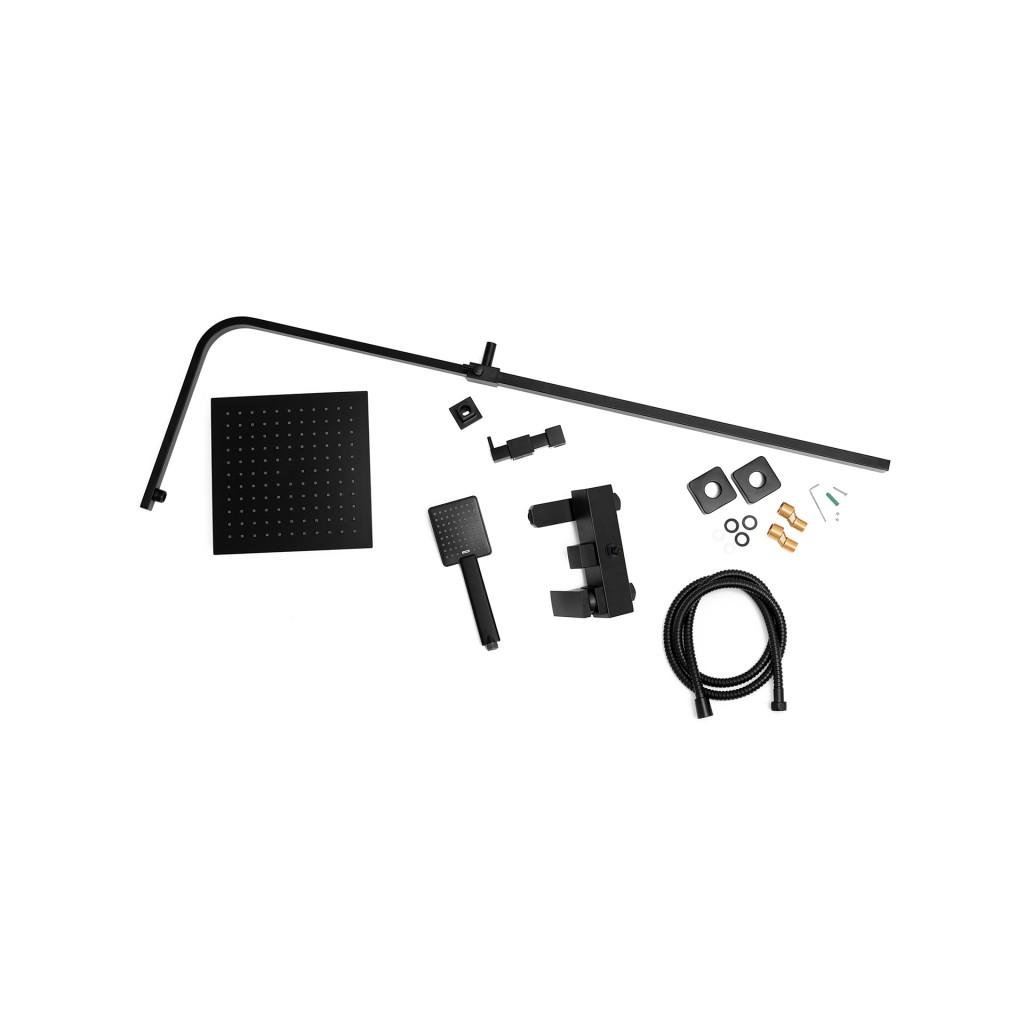 Erga Cube, set de dus cu robinet cu maneta, gura de cada si cap de ploaie 25x25cm, negru mat, ERG-YKA-BP.CUBE-25-BLK