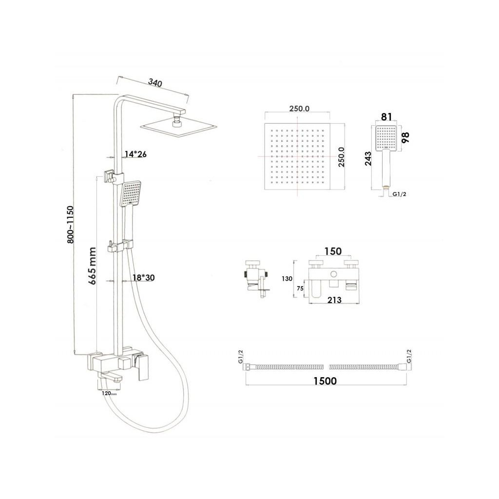 - Dimensiuni cap de ploaie: 250 x 250 mm, 1 functie (ploaie)