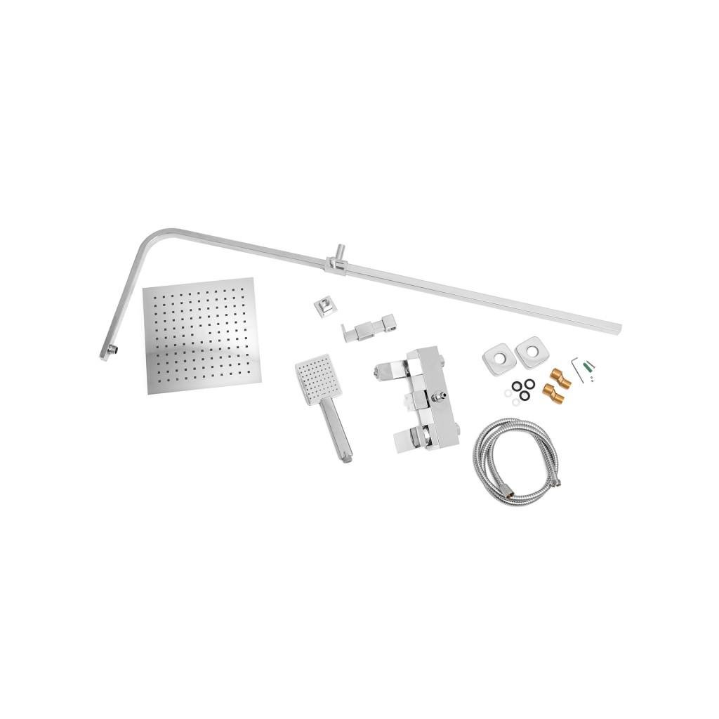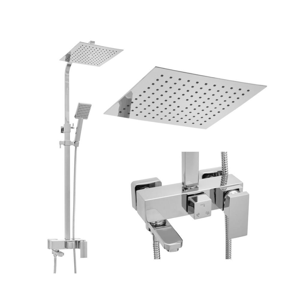 Erga Cube, set de dus cu robinet cu maneta, pipa de cada si cap de ploaie 25x25cm, crom, ERG-YKA-BP.CUBE-25-CHR