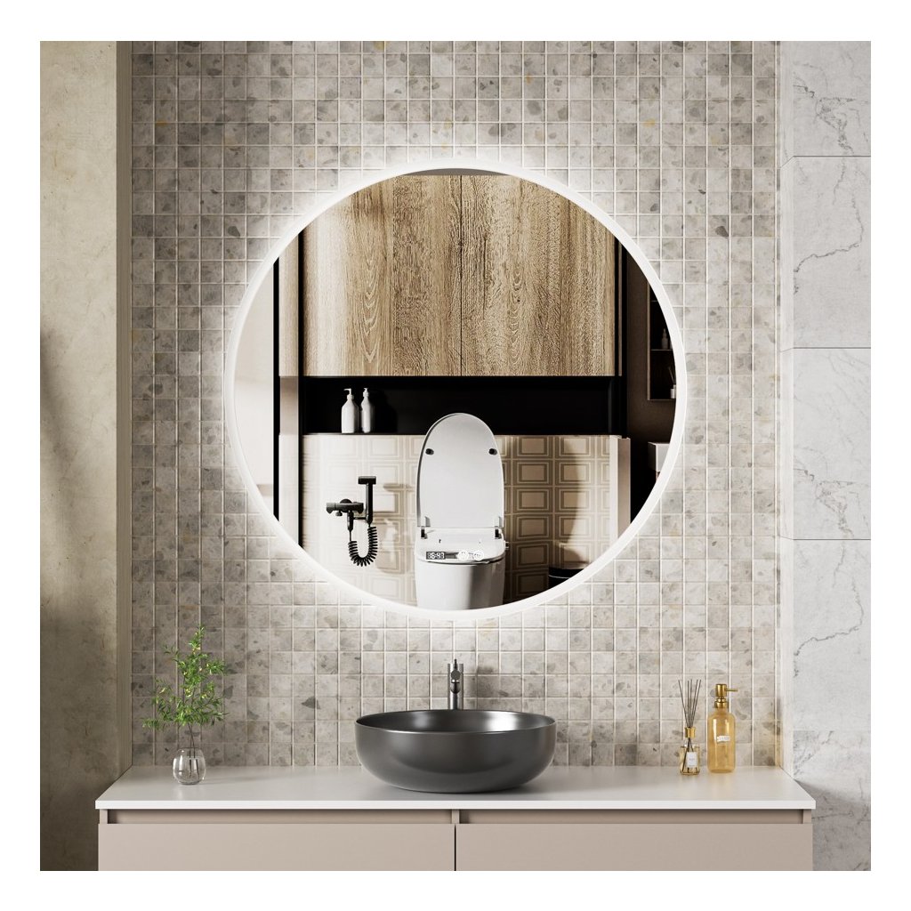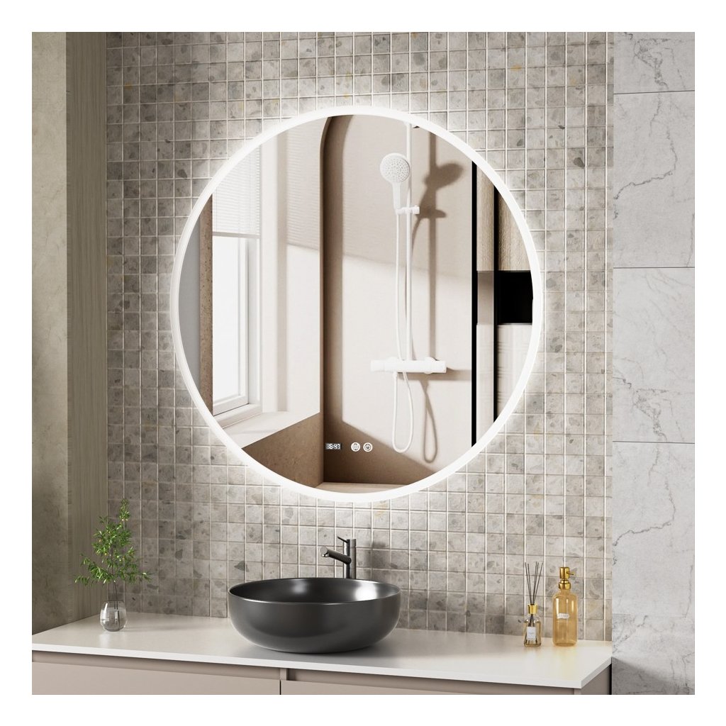 Erga Deam, oglinda LED rotunda 100cm, 3 culori de lumina, iluminare frontala, placa de incalzire anti-aburire, ERG-V01-Deam-1010-CL