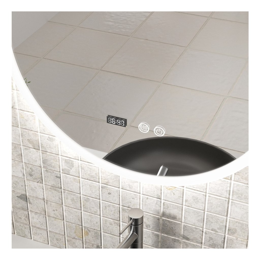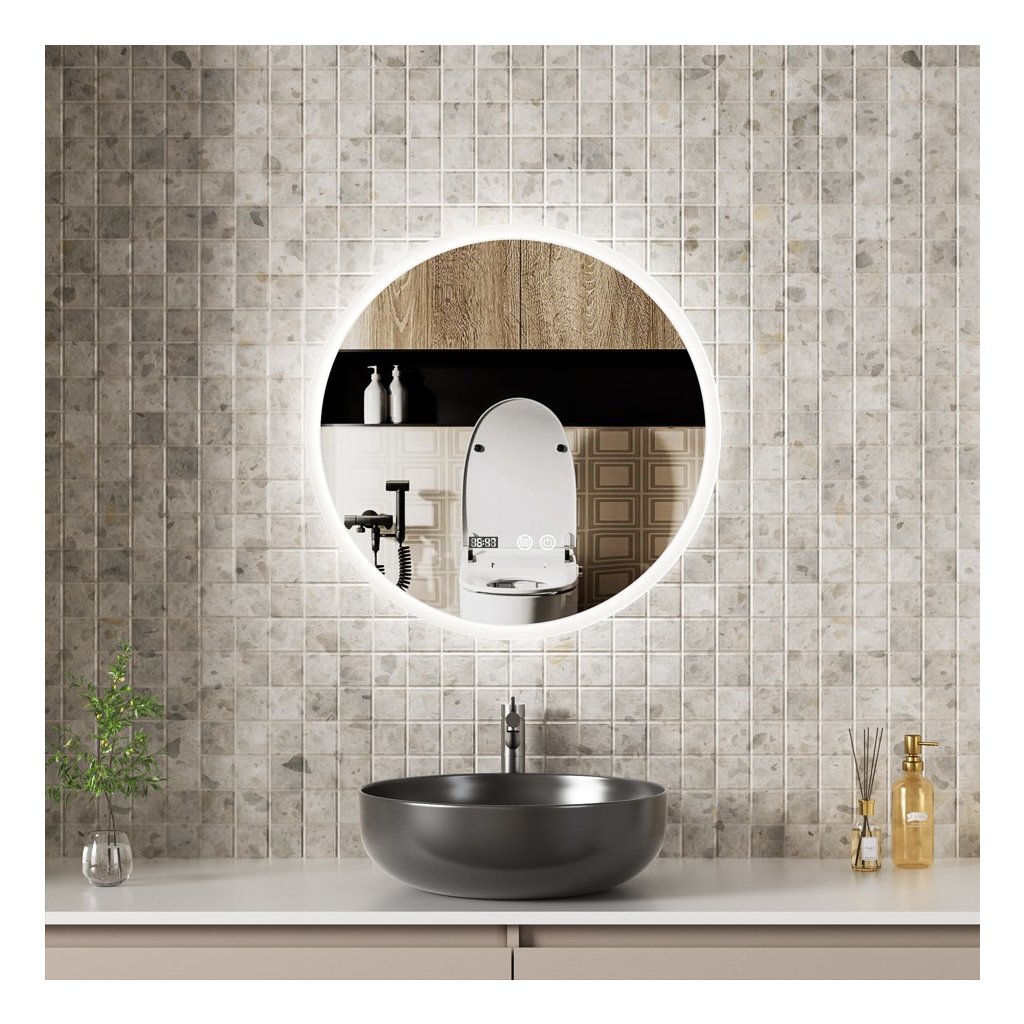 Erga Deam, oglinda LED rotunda 60cm, 3 culori de lumina, iluminare frontala, placa de incalzire anti-aburire, ERG-V01-Deam-6060-CL