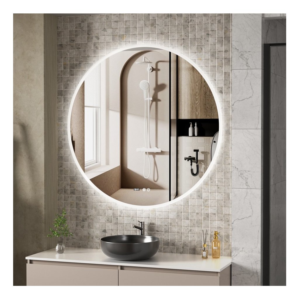 Erga Deam, oglinda rotunda LED 120cm, 3 culori de lumina, iluminare frontala, placa de incalzire anti-aburire, ERG-V01-Deam-1212-CL
