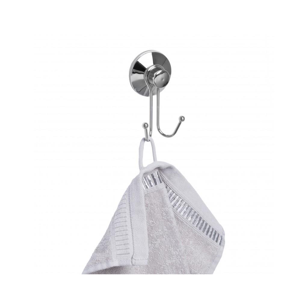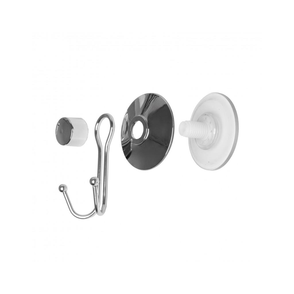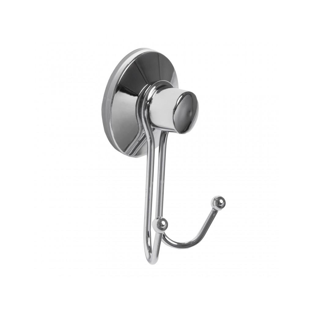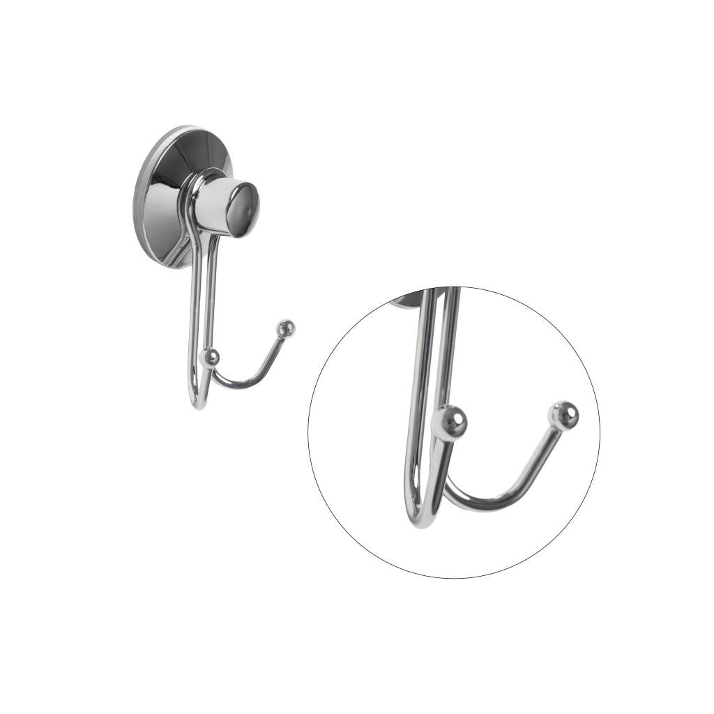 Un cuier de baie cu 2 carlige care se ataseaza de perete cu o ventuza. Fabricat din otel cromat. Acesta garantează o instalare rapidă, ușoară și sigură. Nu necesită găurire sau lipire. Demontarea nu lasă urme. Vă recomandăm să-l folosiți pe suprafețe netede, cum ar fi gresie glazurată sau sticlă de duș.
