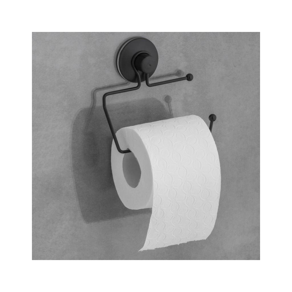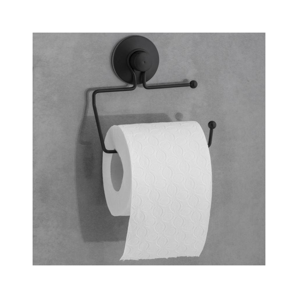 Suport practic pentru hârtie igienică cu ventuză. Mânerul este realizat din sârmă cu acoperire cu pulbere neagră. Ventuza mare asigură că mânerul este ținut corect și stabil chiar și la încărcare. Aderă bine la suprafețele netede. Este un dispozitiv funcțional într-o baie modernă. Recomandăm nu numai caselor private, ci și hotelurilor și pensiunilor. Vă recomandăm să-l utilizați pe suprafețe netede, cum ar fi faianța glazurată sau sticla de duș.