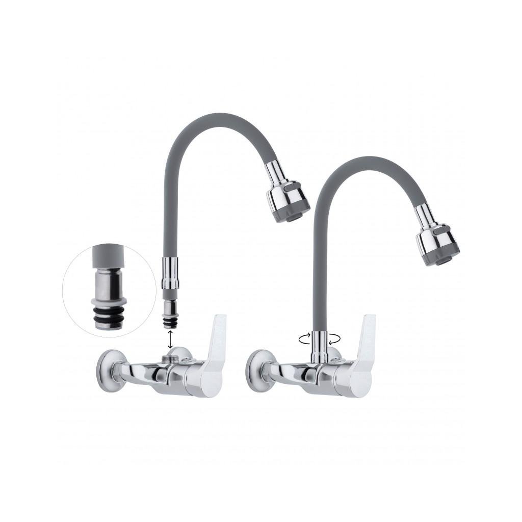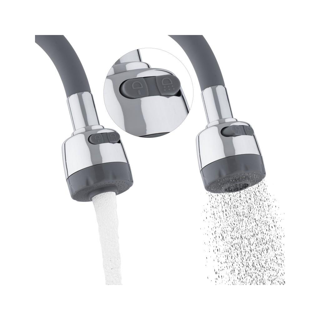 Braț flexibil cu memorie de formă în negru. Este echipat cu o duză cu jet dublu care asigură reglarea comodă a debitului de apă în funcție de nevoile dumneavoastră.