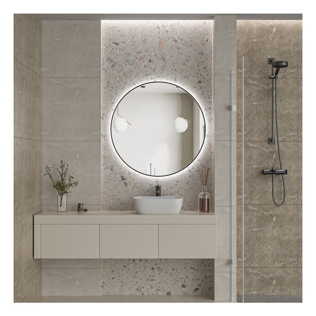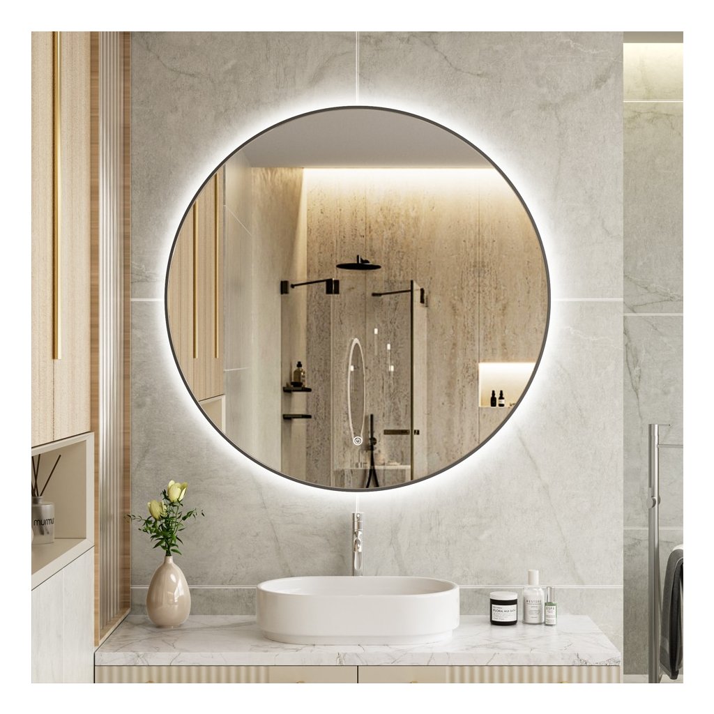 - Tip: Oglindă LED cu iluminare laterală spate în ramă de aluminiu negru