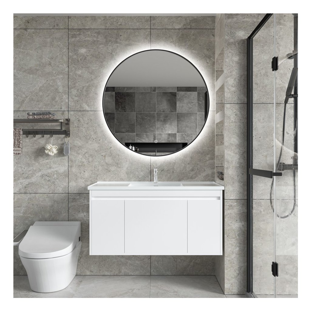 Erga Emma, oglindă rotundă LED 100cm, ramă metalică neagră, 2300 lm, 6500K, iluminare din spate, ERG-V01-201-1010-BK