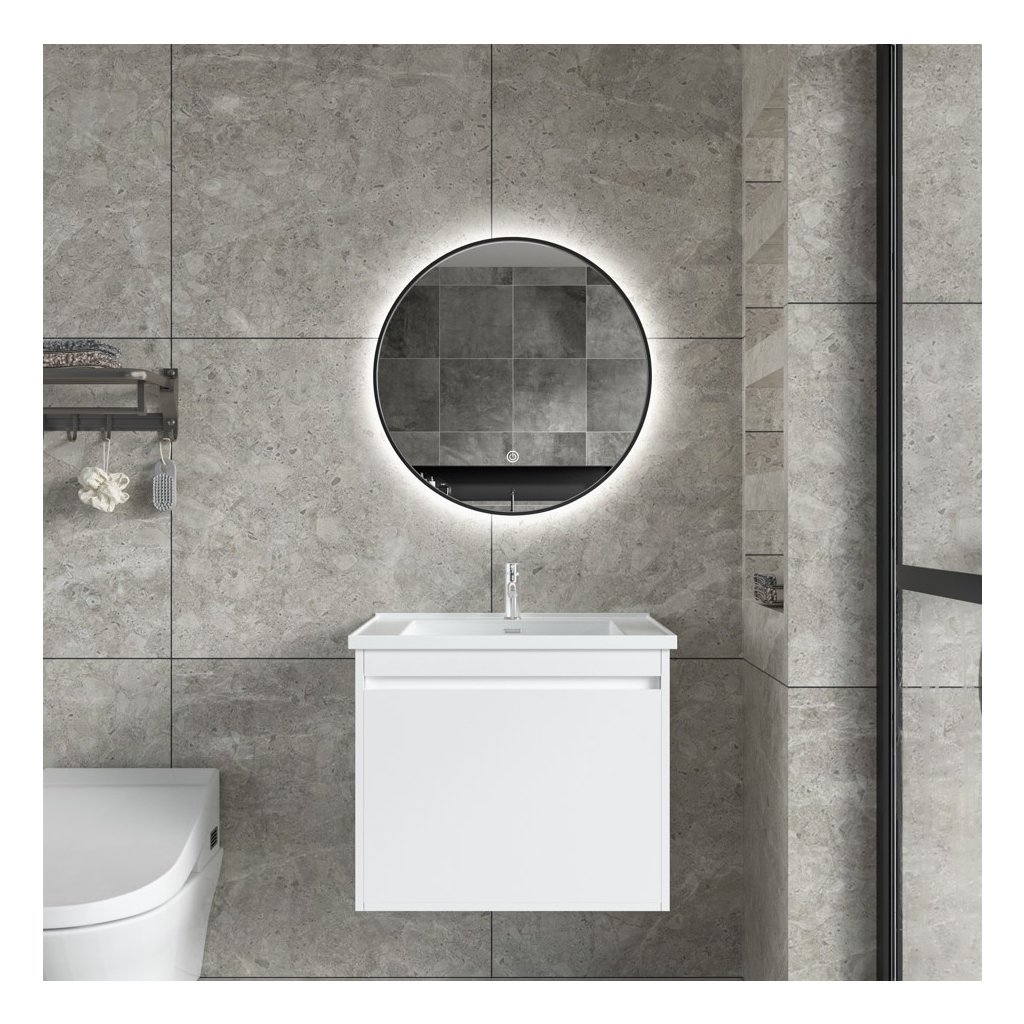 Erga Emma, oglindă rotundă LED 50cm, ramă metalică neagră, 1150 lm, 6500K, iluminare din spate, ERG-V01-201-5050-BK