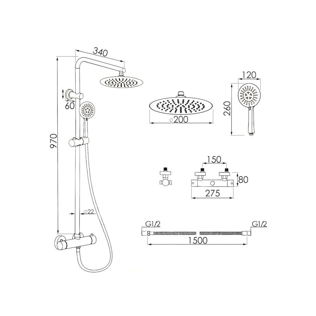 Erga Enza, set de dus cu robinet termostatic si cap de ploaie 20cm, negru mat, ERG-YKA-BP.ENZA20-BLK