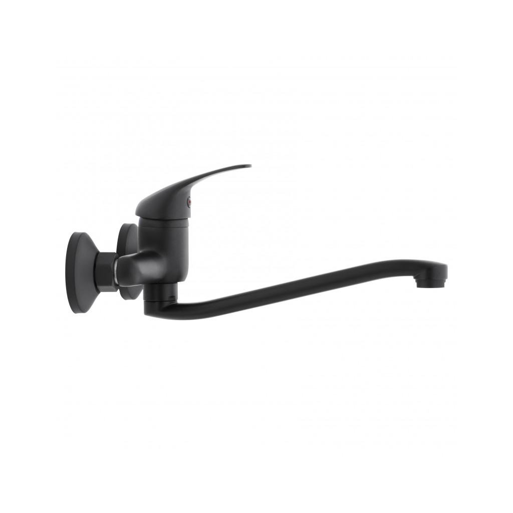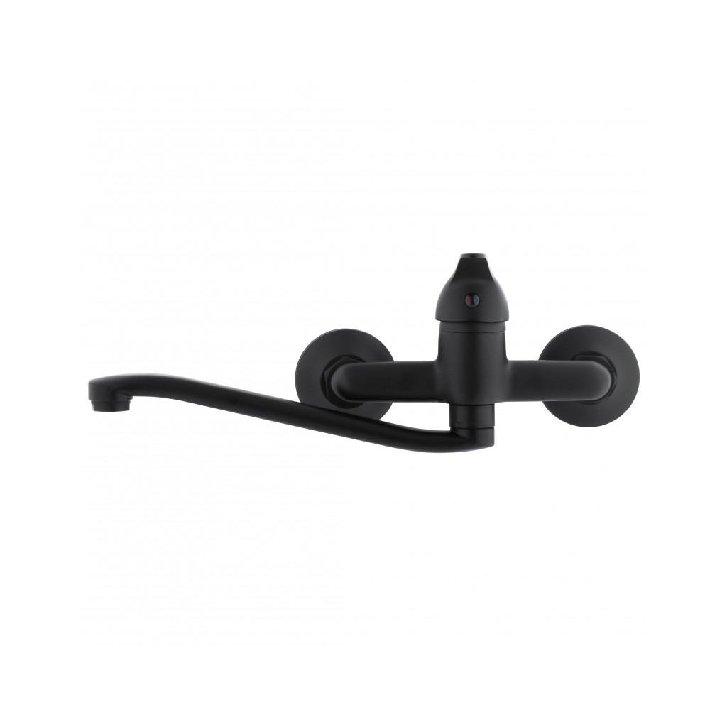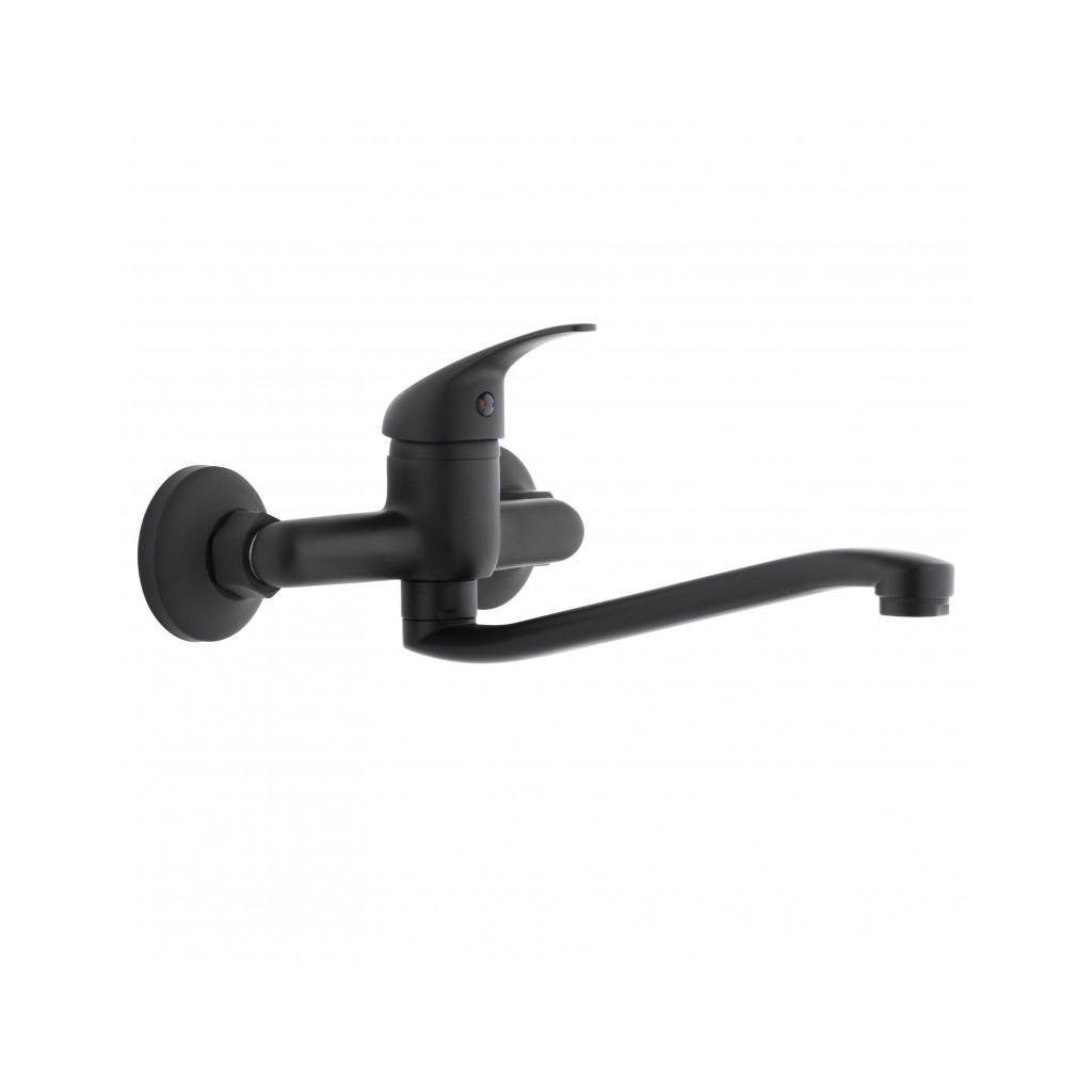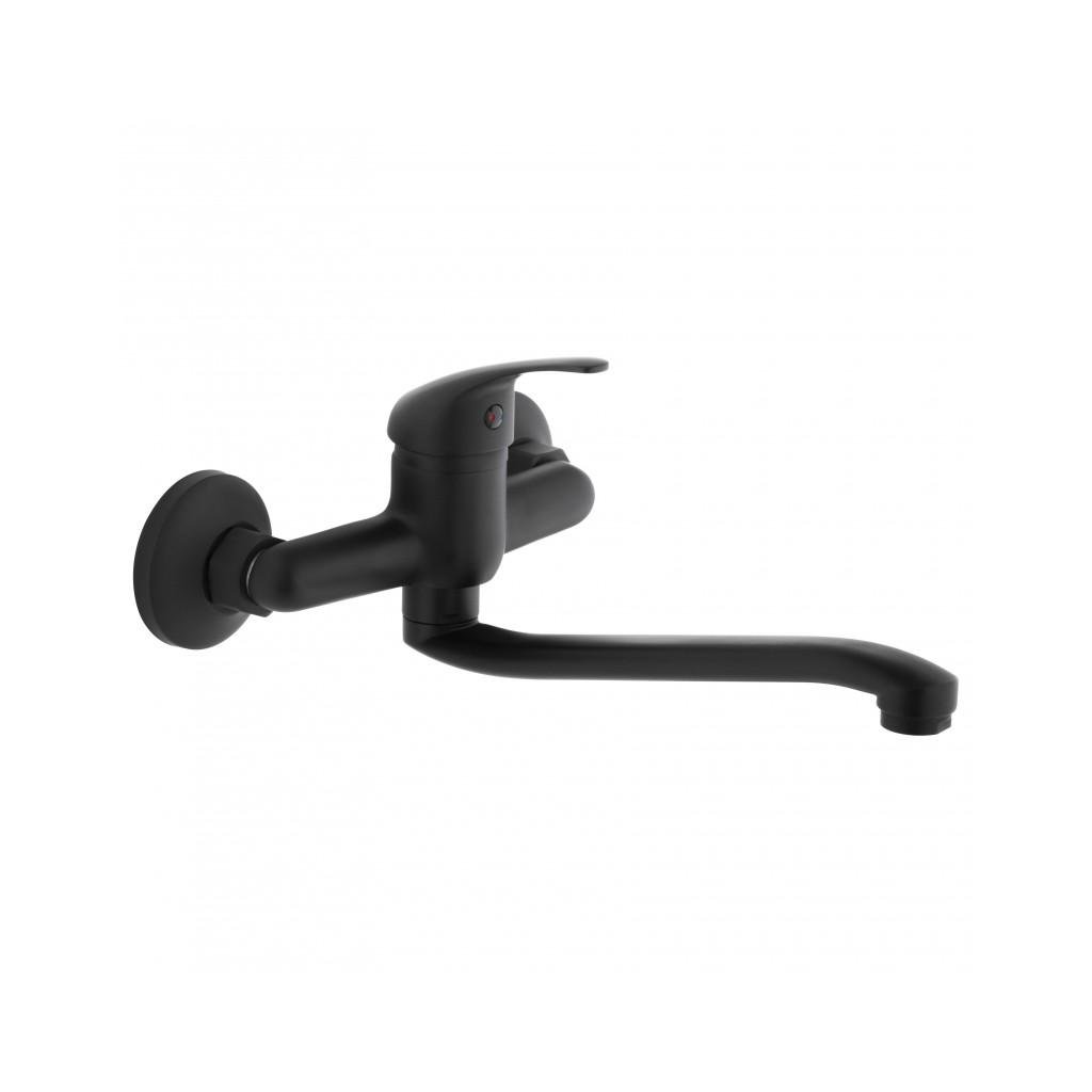Erga Fizar, baterie pentru chiuvetă de perete cu gura lungă, negru mat, ERG-YKA-BZ.FIZAR-BLK