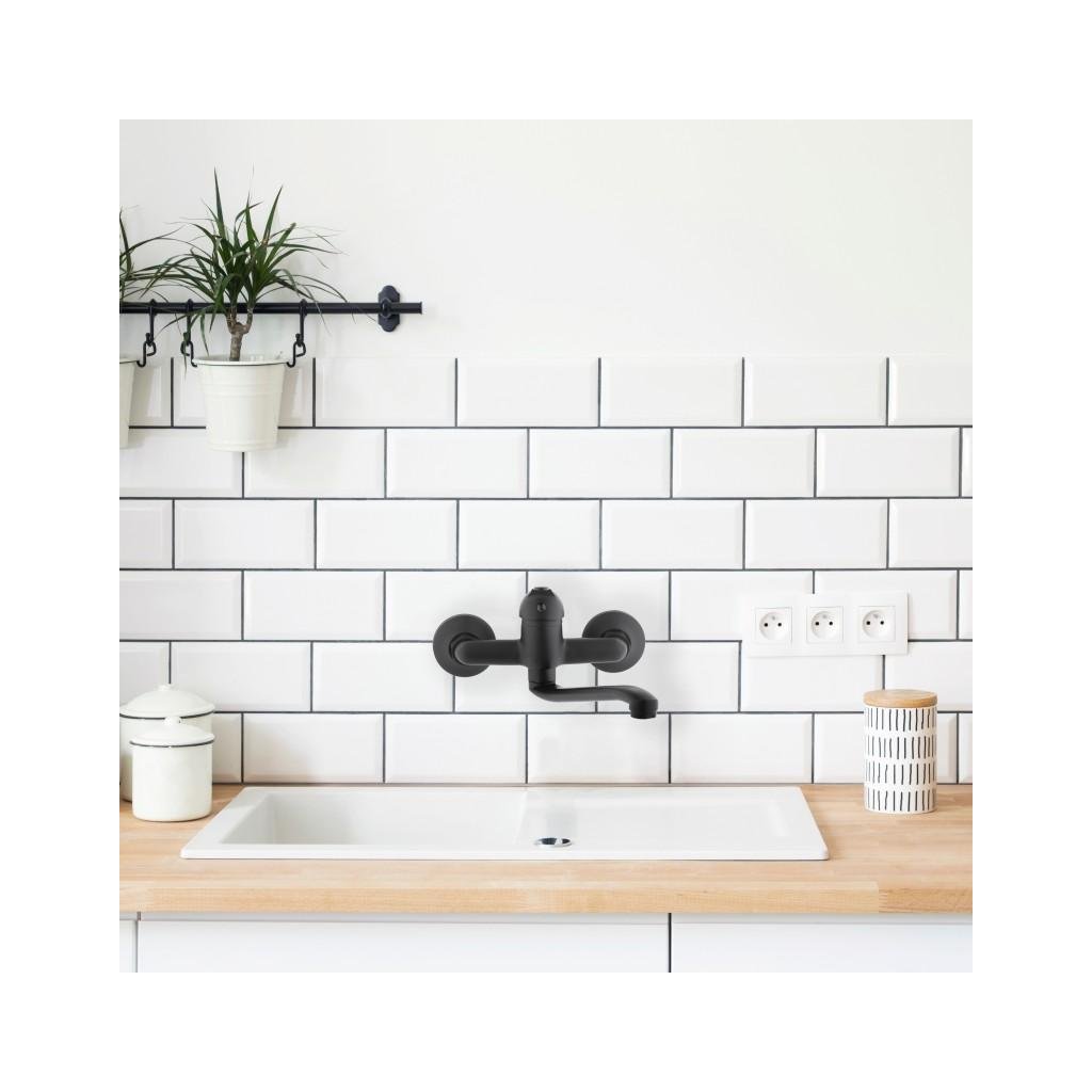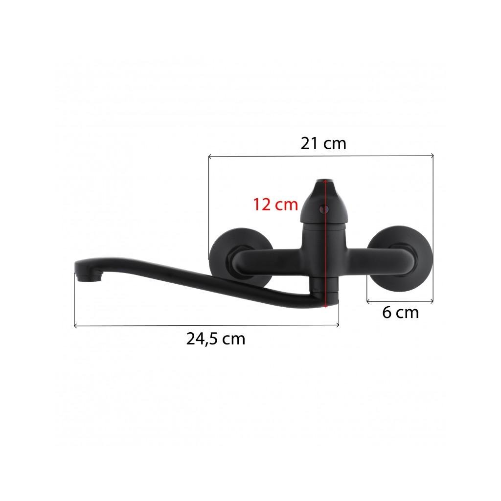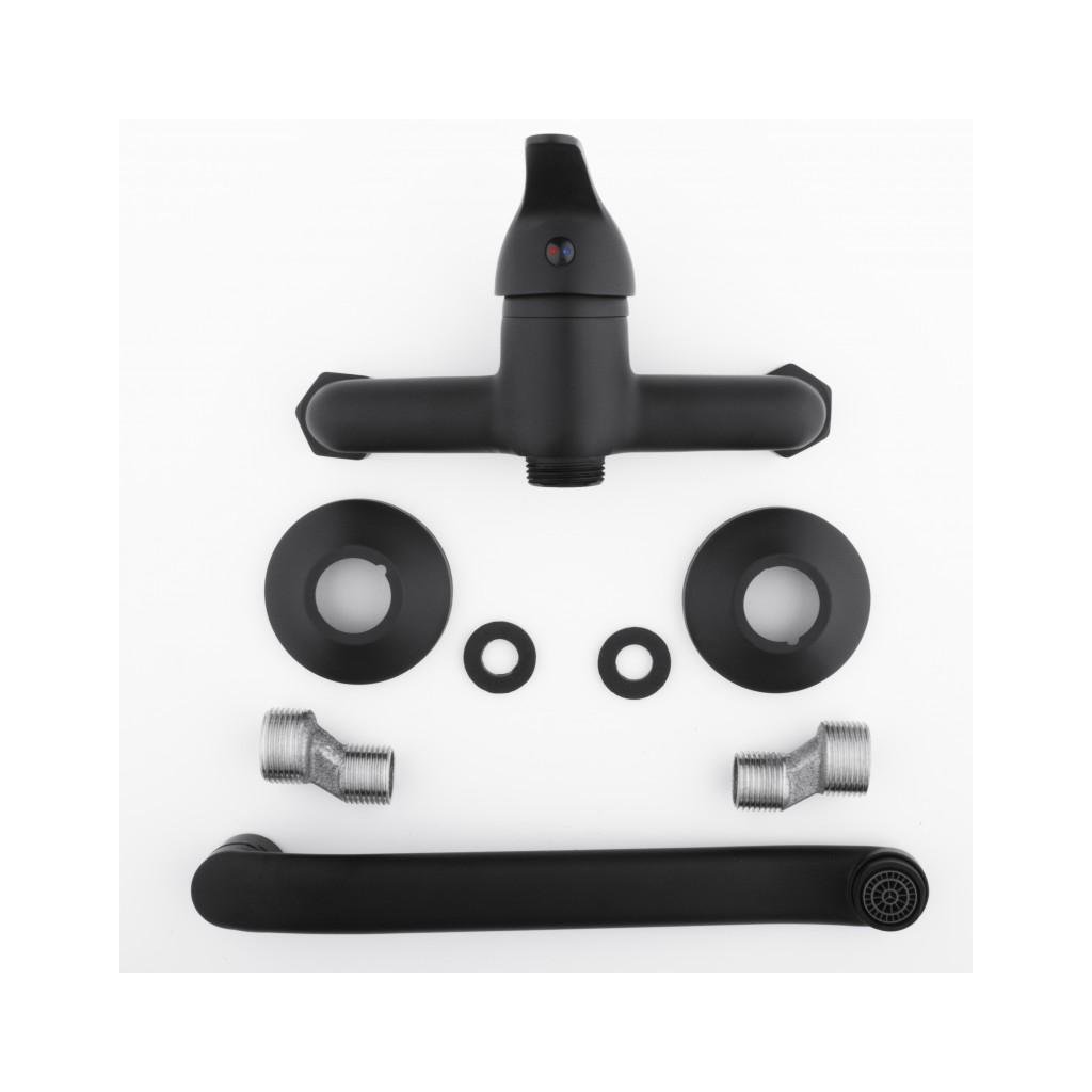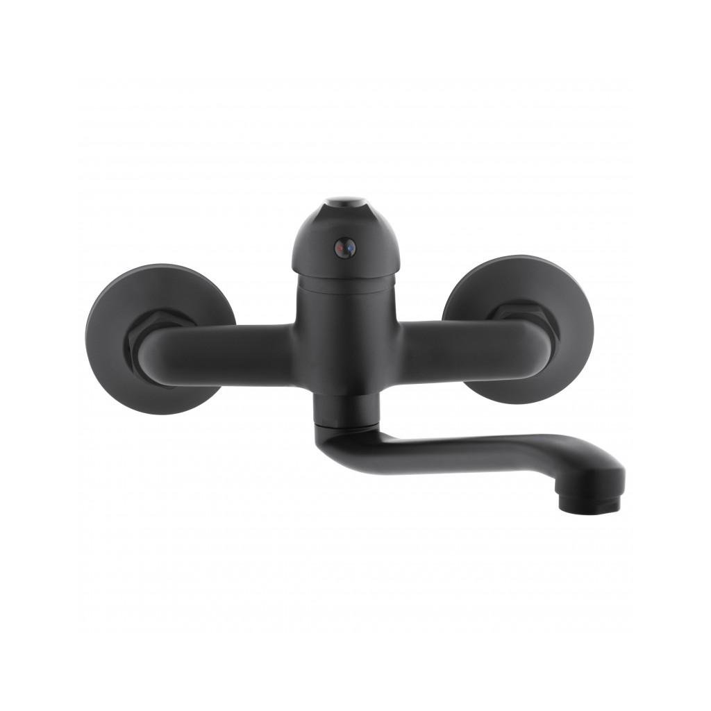 Erga Fizar, baterie pentru chiuvetă de perete cu gura lungă, negru mat, ERG-YKA-BZ.FIZAR-BLK