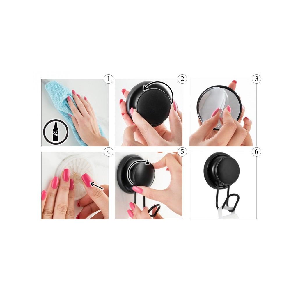 Umeraș pentru baie cu patru cârlige atașate de perete cu o ventuză puternică. Proprietatea care distinge ventuza este eficacitatea acesteia pe gresie portelanata mata. Structura sa seamănă cu un gel foarte gros, astfel încât pătrunde îndeaproape în suprafețele poroase. Este eficient și pe gresie, laminate, frigidere, sticlă și alte suprafețe netede. Acesta garantează o instalare rapidă, ușoară și sigură. Nu necesită găurire sau lipire. Demontarea nu lasă urme.