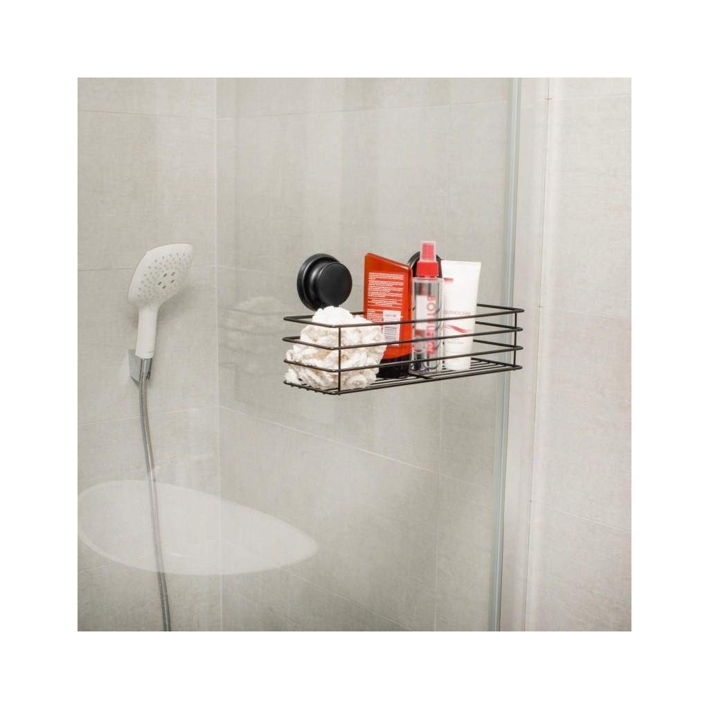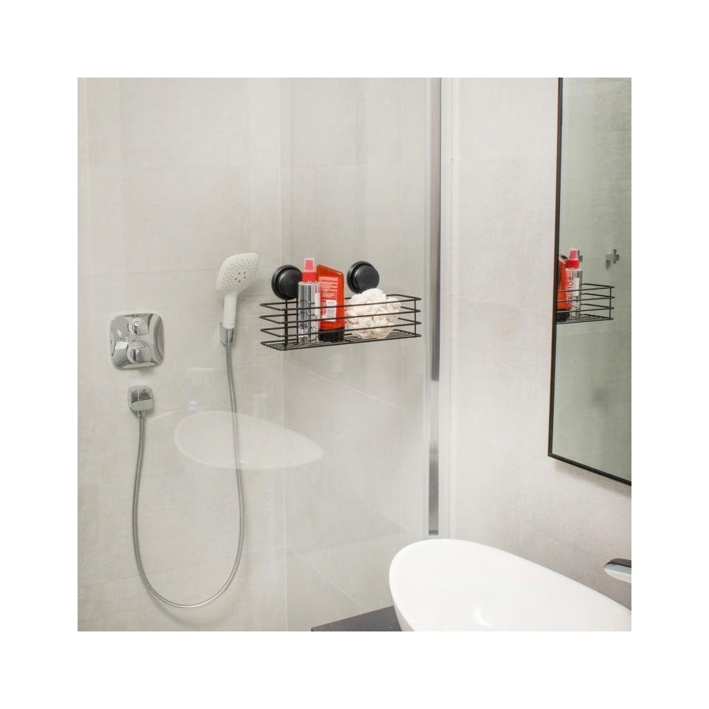 Un coș dreptunghiular de baie atașat de perete cu o ventuză puternică. Proprietatea care distinge ventuza este eficacitatea acesteia pe gresie portelanata mata. Structura sa seamănă cu un gel foarte gros, astfel încât pătrunde îndeaproape în suprafețele poroase. Este eficient și pe gresie, laminate, frigidere, sticlă și alte suprafețe netede. Acesta garantează o instalare rapidă, ușoară și sigură. Nu necesită găurire sau lipire. Demontarea nu lasă urme.