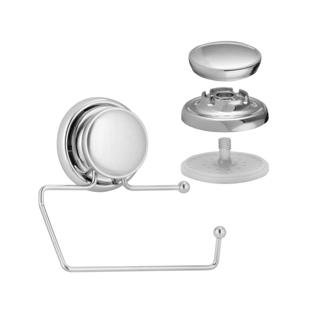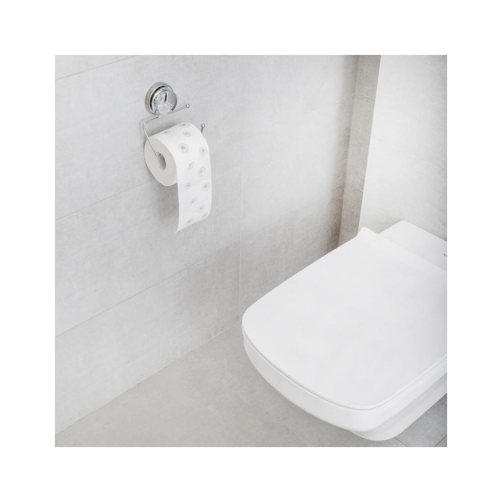 Suport pentru hârtie igienică atașat cu o ventuză puternică. O trăsătură caracteristică a ventuzei este eficiența acesteia pe gresie mată. Structura sa seamănă cu un gel foarte gros și, prin urmare, pătrunde bine în suprafețele poroase. Este eficient și pe gresie, laminate, frigidere, sticlă și alte suprafețe netede. Garantează o instalare rapidă, ușoară și sigură. Nu necesită găurire sau lipire. Demontarea nu lasă urme.