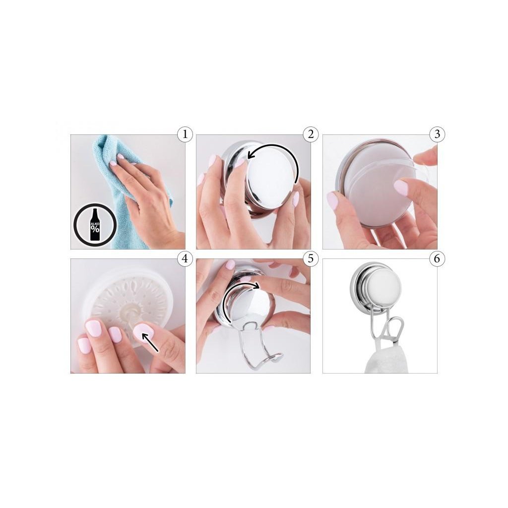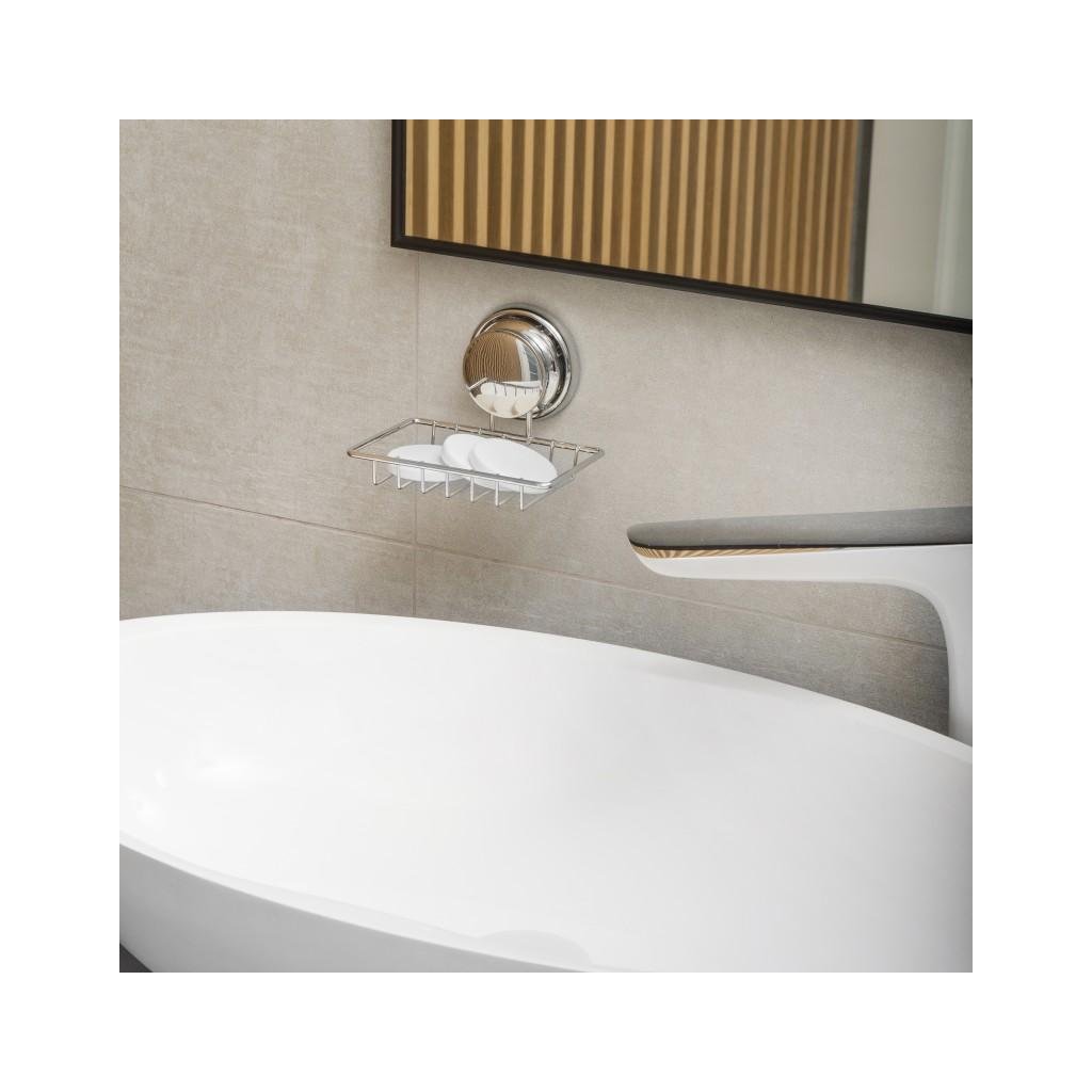 Vasă de săpun de baie, dreptunghiulară, montată pe perete, cu ventuză puternică. Proprietatea care distinge ventuza este eficacitatea acesteia pe gresie portelanata mata. Structura sa seamănă cu un gel foarte gros, astfel încât pătrunde îndeaproape în suprafețele poroase. Este eficient și pe gresie, laminate, frigidere, sticlă și alte suprafețe netede. Acesta garantează o instalare rapidă, ușoară și sigură. Nu necesită găurire sau lipire. Demontarea nu lasă urme.