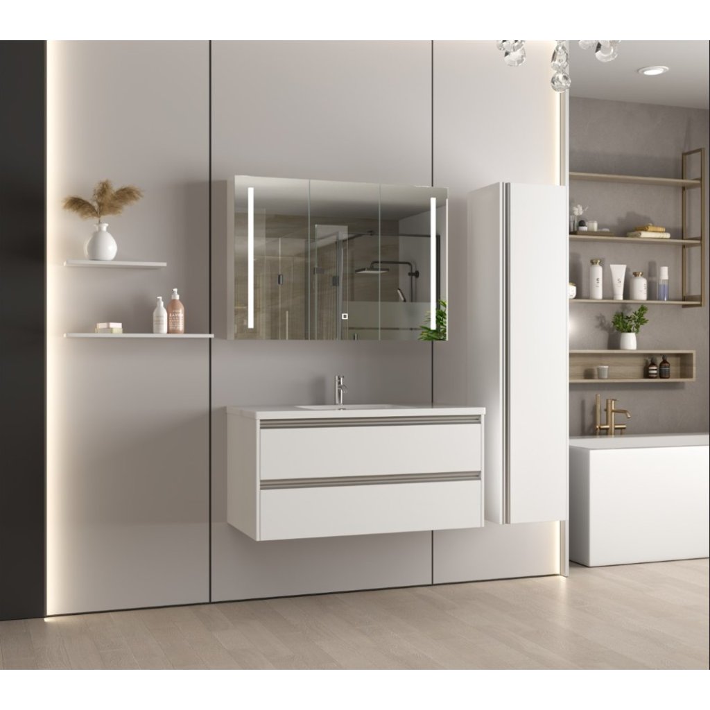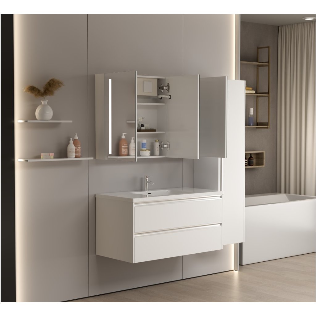 - Tip: dulap de perete cu iluminare LED și sertar integrat