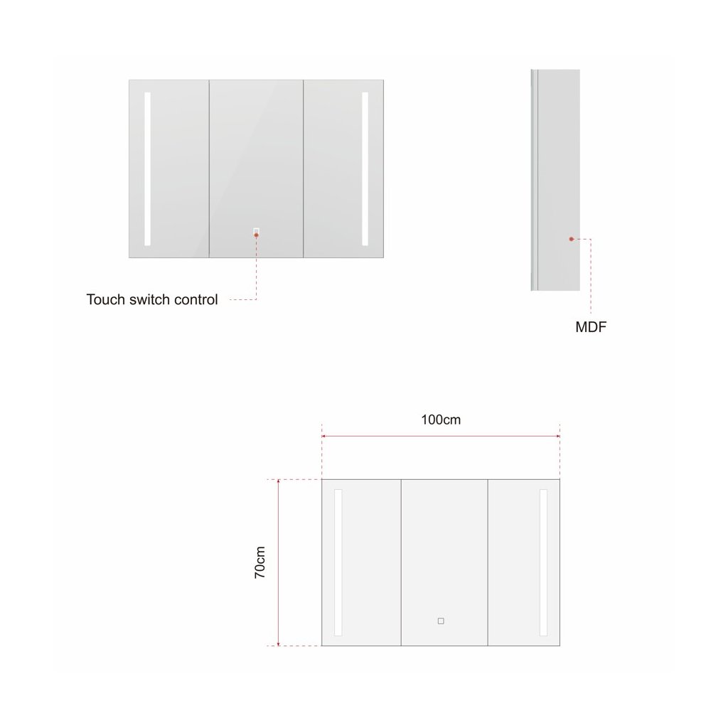 Erga Hana, bucătărie cu oglinzi și iluminare LED 100x70cm cu sertar integrat, alb, ERG-V05-HANA-1070-WH