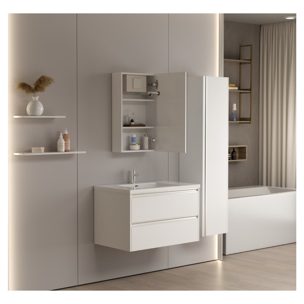 Erga Hana, bucătărie cu oglinzi și iluminare LED 40x70cm cu sertar integrat, alb, ERG-V05-HANA-4070-WH