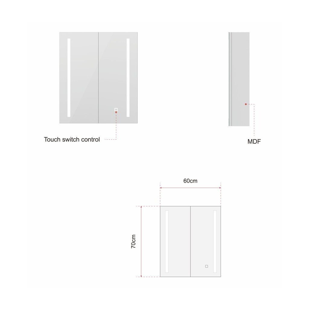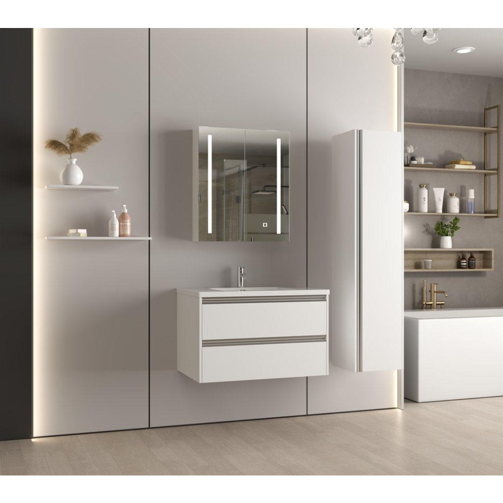 Erga Hana, bucătărie cu oglinzi și iluminare LED 60x70cm cu sertar integrat, alb, ERG-V05-HANA-6070-WH
