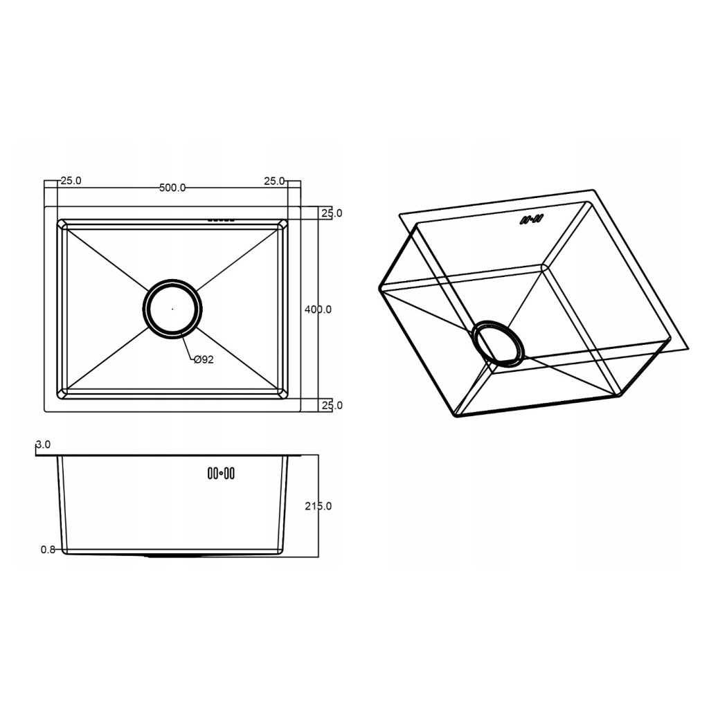 - Dimensiuni chiuveta bucatarie: 500 mm x 400 mm x 210 mm